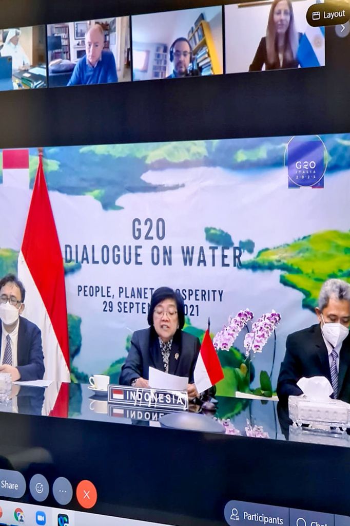 Indonesia, pada berbagai strata pemerintahan bekerja mewujudkan komitmen global dalam menjaga kelestarian sumber daya air. Demikian pernyataan penting Menteri Lingkungan Hidup dan Kehutanan (LHK), Siti Nurbaya, ketika menjadi salah satu pembicara kunci dalam acara High-level Dialogue on Water, atas undangan Pemerintah Italia selaku Presidensi G20 2021.