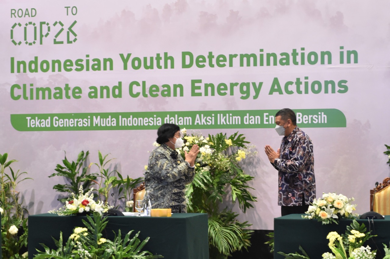 Dalam Webinar Indonesian Youth's Determination to Reinforce Clean Energy and Climate Action, Tekad Generasi Muda Indonesia Mencegah Perubahan Iklim & Mendukung Energi Bersih, Menteri LHK Siti Nurbaya mengapresiasi para generasi muda yang telah berperan aktif melakukan upaya pengendalian perubahan iklim terutama dengan mengupayakan penggunaan energi bersih yang terbarukan.