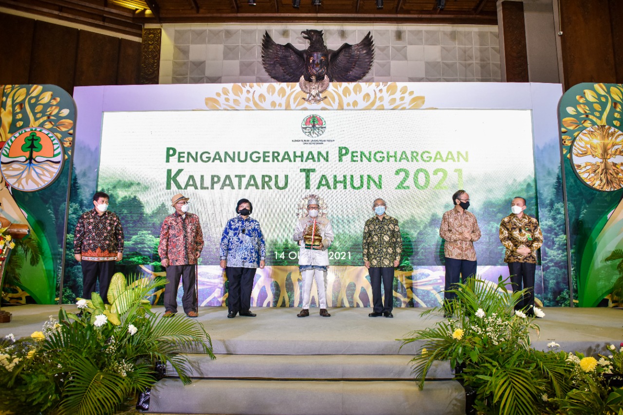 Sebanyak 10 orang/kelompok menerima penghargaan KALPATARU tahun 2021 atas kepeloporannya memelihara dan melestarikan lingkungan hidup dan kehutanan di Indonesia. Penghargaan diberikan langsung oleh Menteri Lingkungan Hidup dan Kehutanan, Siti Nurbaya di Jakarta, Kamis, (14/10).
