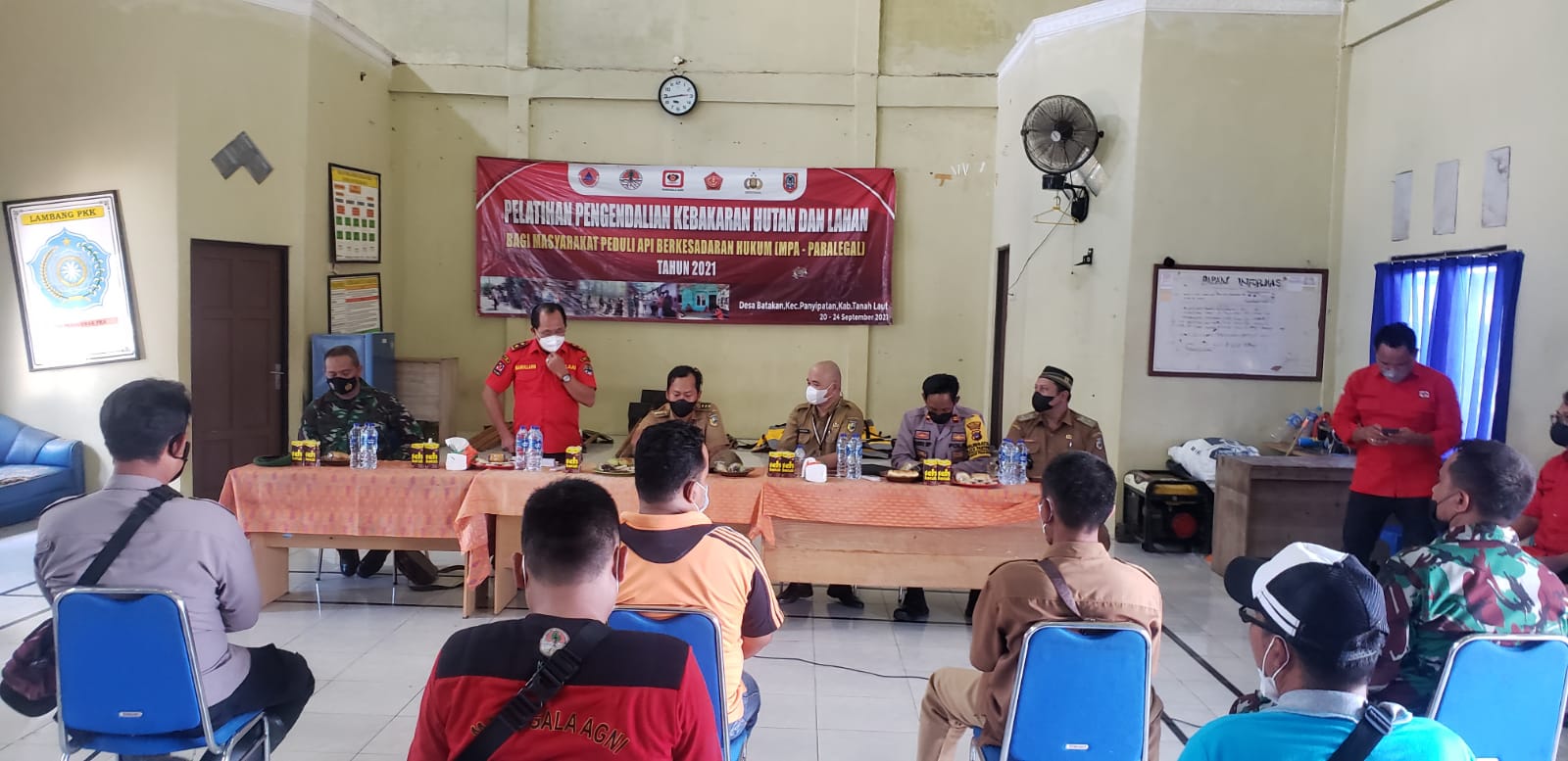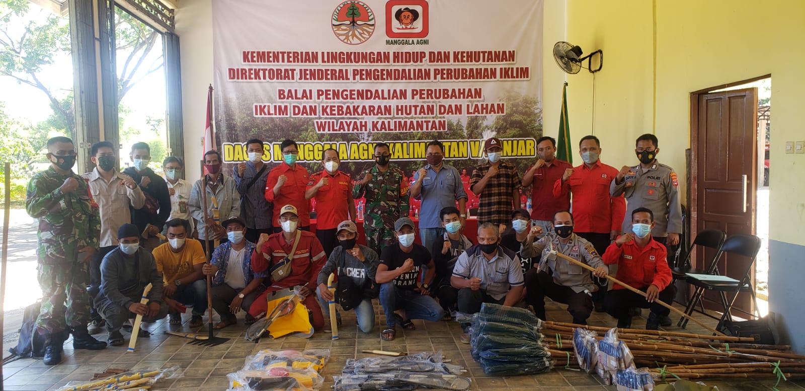 Peralatan pemadaman yang diserahkan kepada kelompok MPA-Paralegal berupa pompa punggung, kapak, garu tajam, garu pacul, sekop, kikir, golok/parang, sekop. peralatan perlengkapan pribadi berupa topi, lampu kepala, kaca mata pengaman, masker, penutup leher, perples, ransel, sepatu pemadam, baju pemadam, dan kaos.