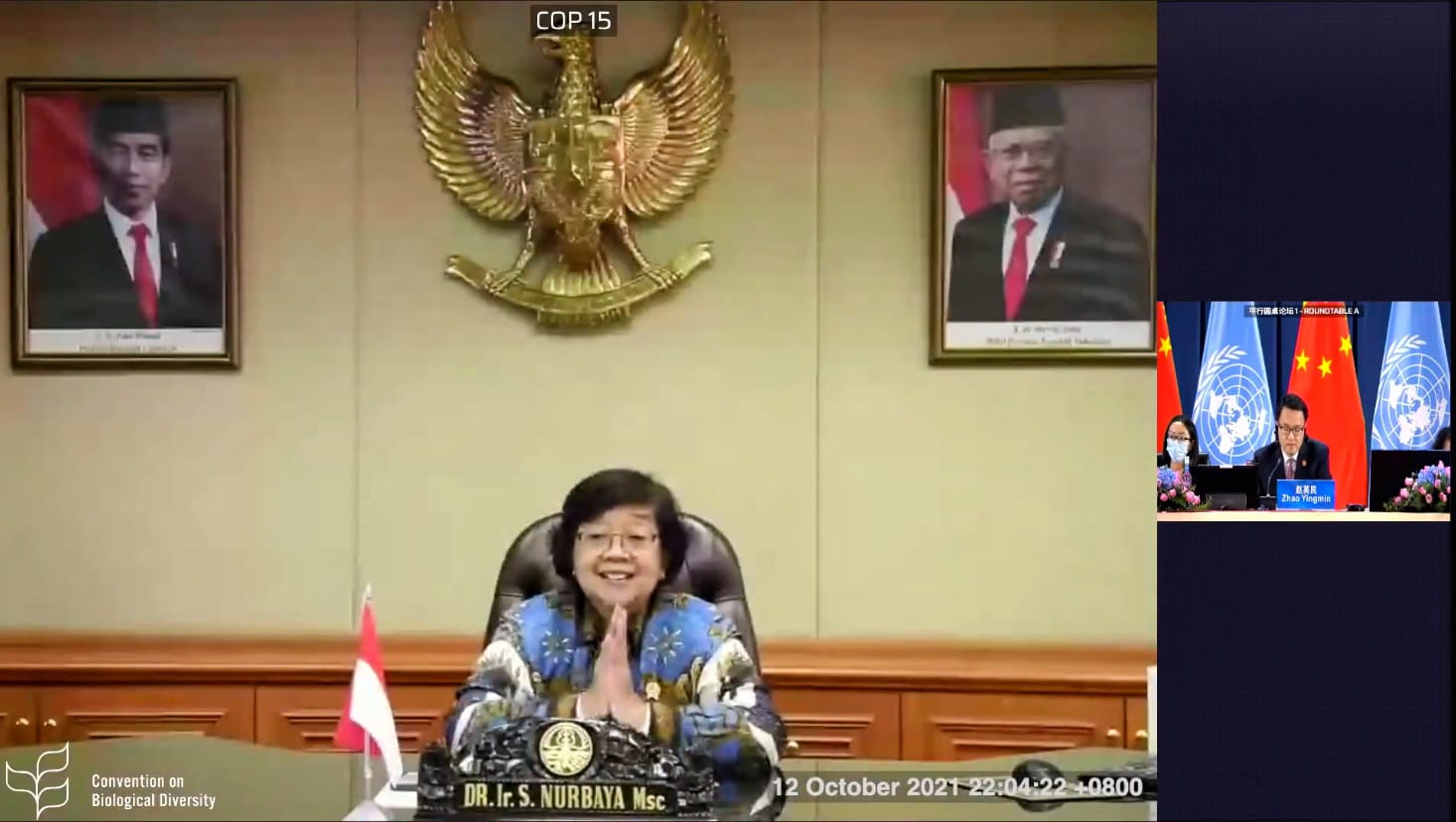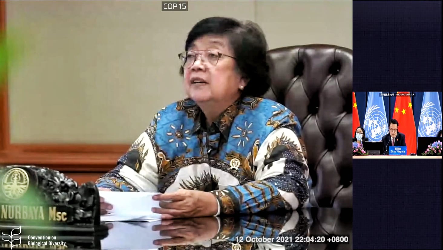 Menteri Lingkungan Hidup dan Kehutananan, Siti Nurbaya memimpin Delegasi RI (DELRI) pada fase pertama Pertemuan Para Pihak Konvensi Keanekaragaman Hayati ke-15, the Fifteenth meeting of the Conference of the Parties to the Convention (COP 15 UNCBD) yang digelar bersamaan dengan Pertemuan Para Pihak, the Meetings of the Parties to the Cartagena Protocols (MOP 10 CP) and Nagoya Protocols (MOP 4 NP), yang diselenggarakan secara daring dan luring dari tanggal 11-15 Oktober 2021 di Kunming, China. Dalam pertemuan ini, Pemerintah Indonesia menyampaikan terobosan-terobosan dan komitmennya dalam mengelola keanekaragaman hayati.