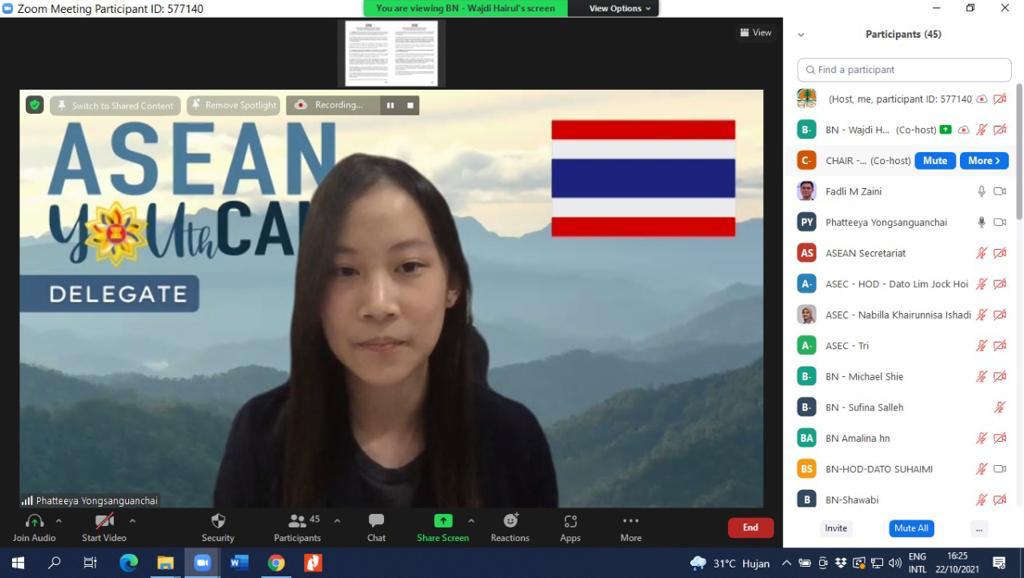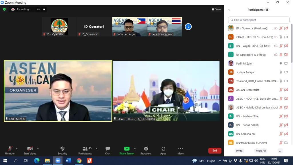“Kalian adalah agen perubahan, entrepreneur, dan innovator, baik melalui pendidikan, ilmu pengetahuan atau teknologi, atau bidang lain di luar sana. Kalian yang hadir di hadapan kita hari ini adalah kontributor, untuk mempercepat aksi iklim. Melalui ASEAN YouCAN, kita bersama-sama meningkatkan aspirasi dan partisipasi generasi muda dalam mengatasi perubahan iklim,” ujar Menteri Siti di hadapan para peserta dari perwakilan generasi muda dan para Delegasi Menteri Lingkungan se-ASEAN.