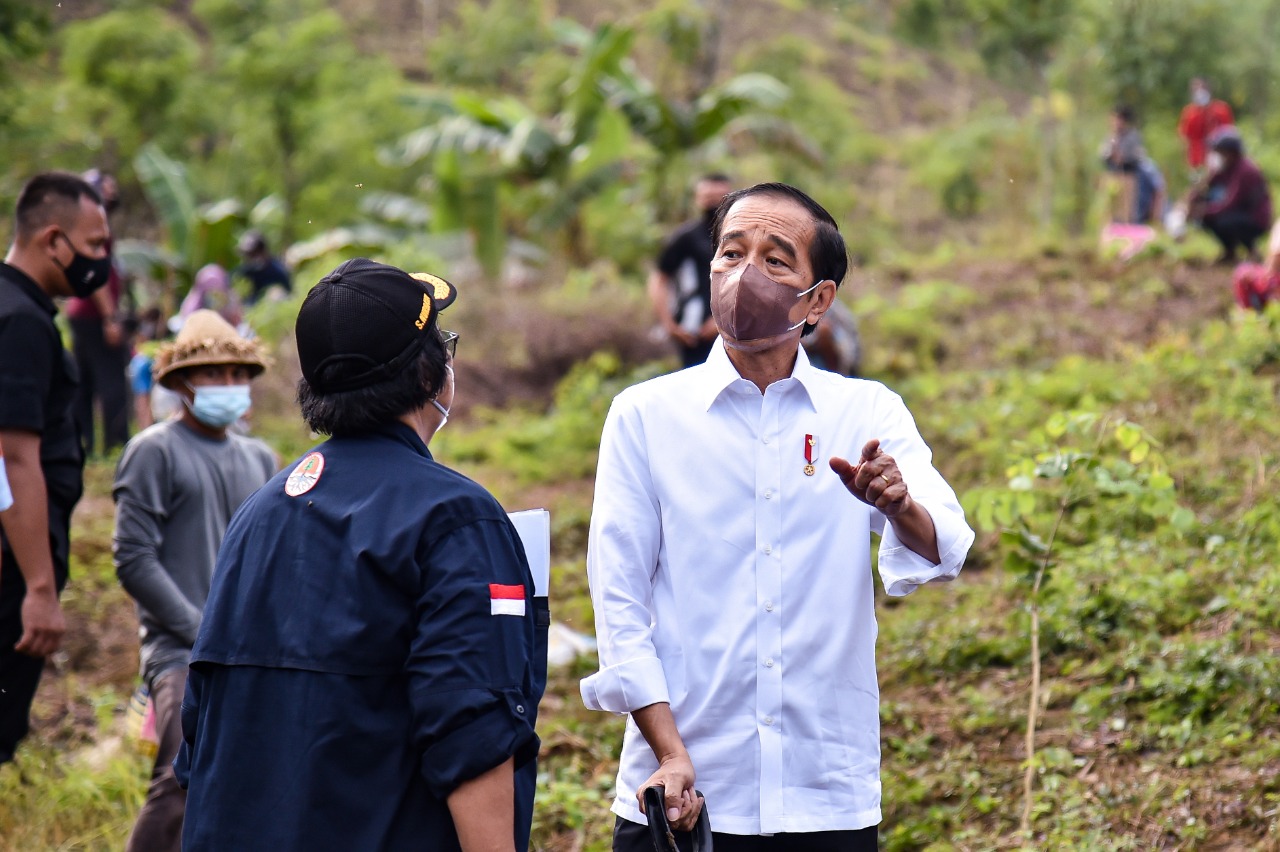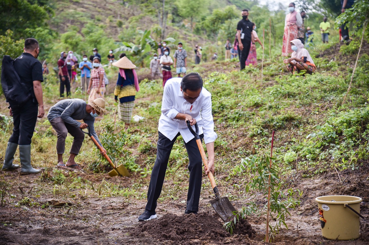 "Saya pesan kepada masyarakat agar yang sudah ditanam ini dipelihara dan dijaga, agar nanti semuanya tumbuh dengan baik, dan memberikan dampak ekonomi kepada seluruh masyarakat yang berada di sekitar kawasan ini," kata Presiden Jokowi.
