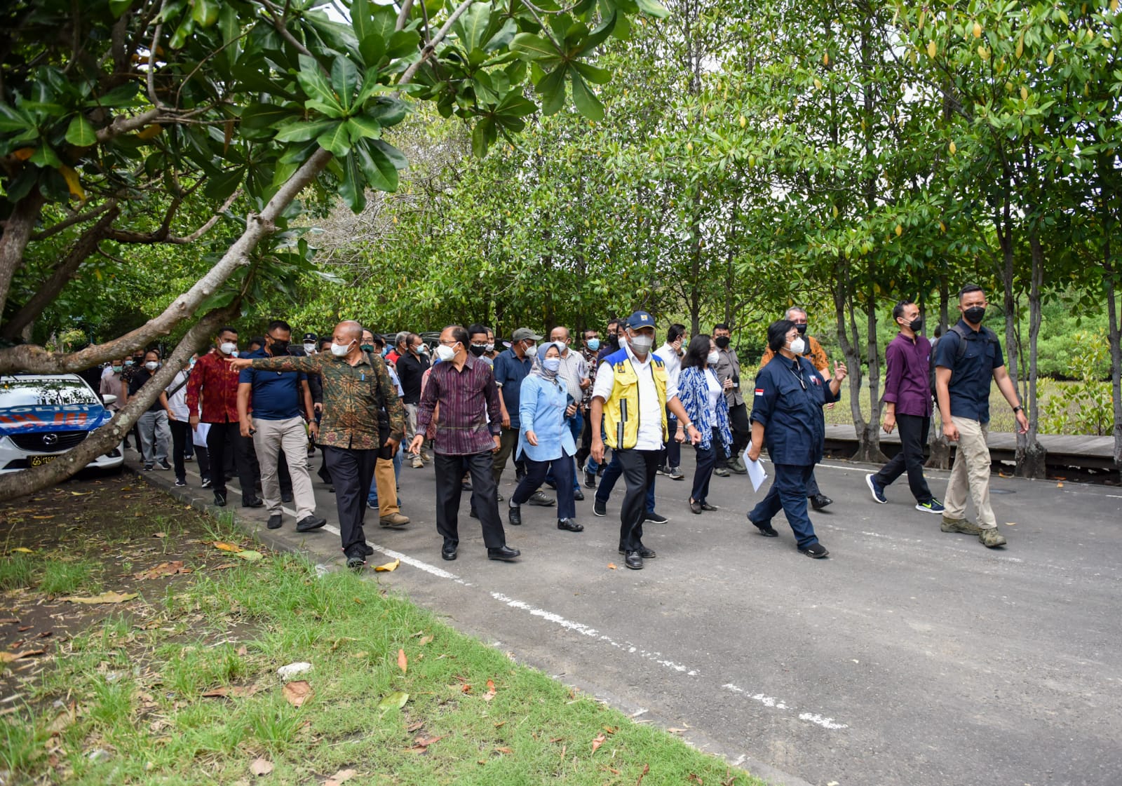 Rapat dilanjutkan dengan peninjauan lapangan terutama kawasan Mangrove Conservation Forest di Taman Hutan Raya Ngurah Rai dan kompleks persemaian DAS dan Balai Penelitian Keramik BPPT yang berada dalam satu kompleks, untuk mendalami situasi kompleks serta kemungkinan spot-spot yang akan menjadi titik perhatian atau reference point dalam acara-acara pada kegiatan yang penting sebagai showcase KTT G20 yang khusus dengan pesan lingkungan yang sangat kuat.