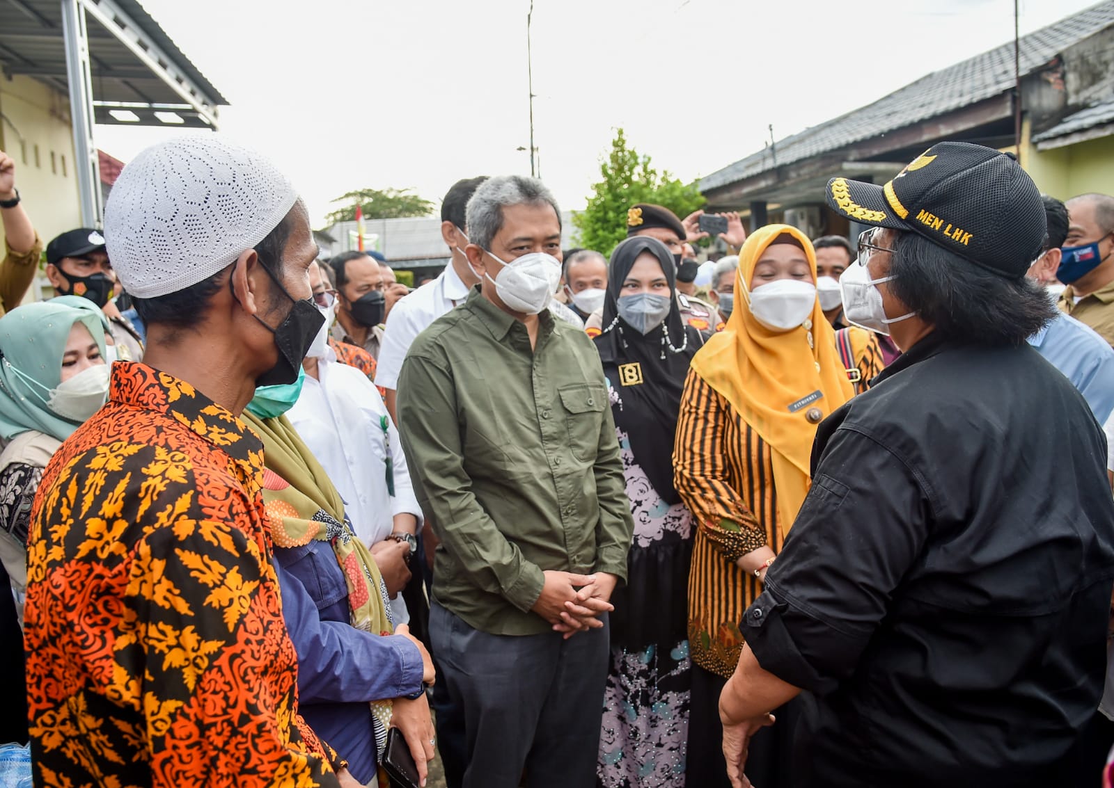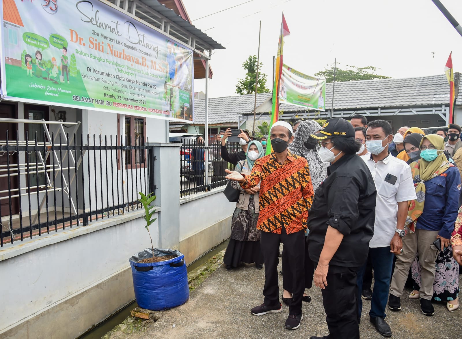Menteri Lingkungan Hidup dan Kehutanan, Siti Nurbaya mengunjungi lorong hijau tanaman buah dalam pot (Tambulapot) di RW 23, Cipta Karya, Tuah Madani, Pekanbaru, Kamis (23/12/2021).