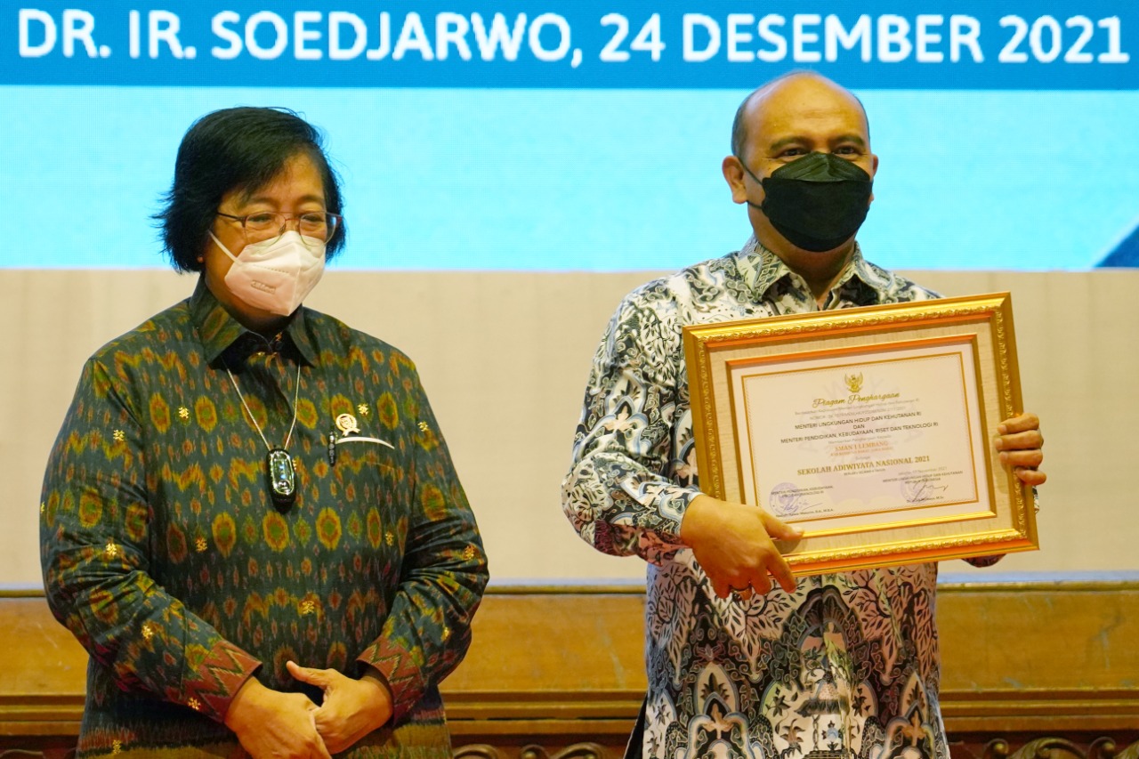 Menteri Lingkungan Hidup dan Kehutanan (LHK) Siti Nurbaya menyerahkan Penghargaan Adiwiyata Nasional dan Mandiri kepada sekolah yang secara konsisten menerapkan Gerakan Peduli dan Berbudaya Lingkungan Hidup di Sekolah (PBLHS). Di tahun ini, sebanyak 344 sekolah memenuhi kriteria dan mendapatkan penghargaan Adiwiyata Nasional. Sedangkan yang memenuhi kriteria dan meraih penghargaan sekolah Adiwiyata Mandiri adalah 77 sekolah.