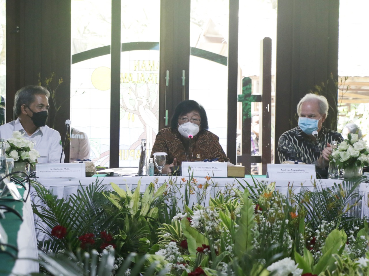 Menteri Siti mengungkapkan pentingnya keterlibatan masyarakat dan para pihak dalam upaya rehabilitasi mangrove. Oleh karenanya, pada kesempatan tersbut juga hadir para pejabat daerah dari empat provinsi dimana proyek akan dilaksanakan yaitu Sumatera Utara, Riau, Kalimantan Timur, dan Kalimantan Utara.