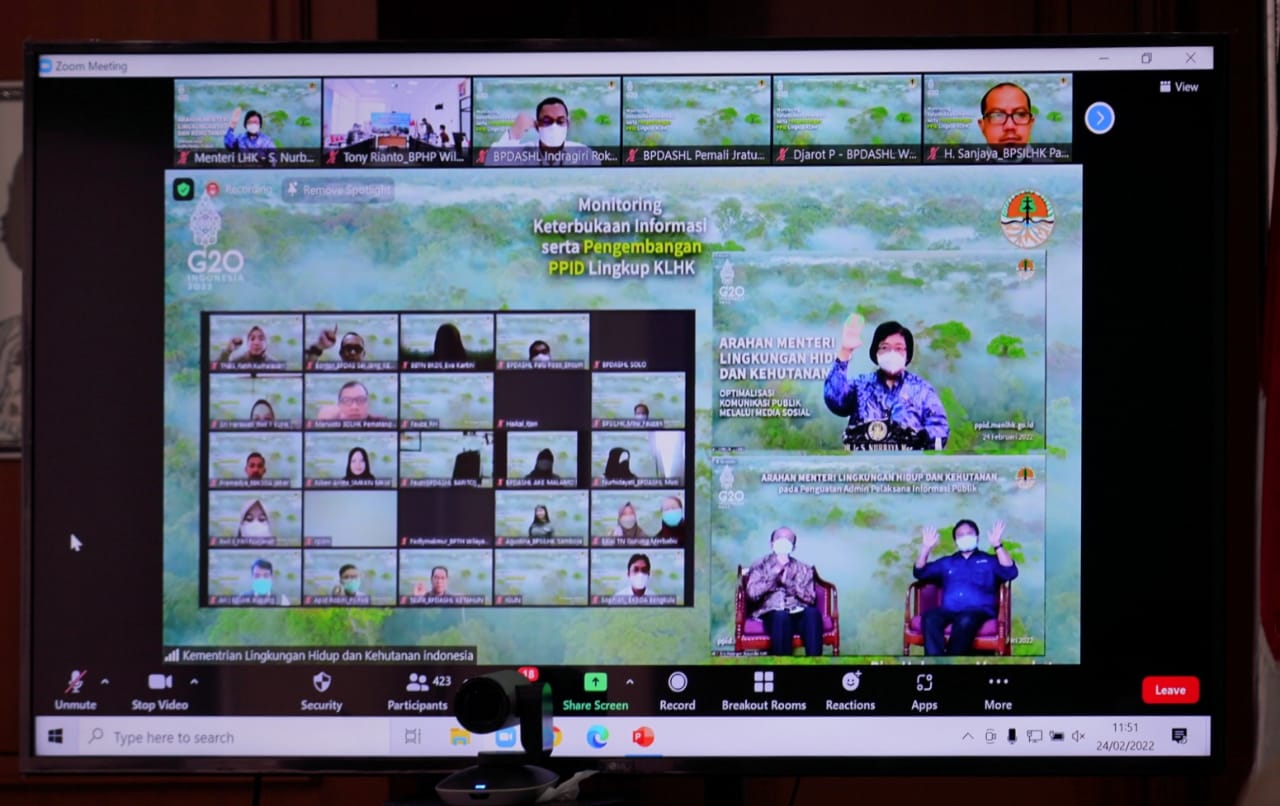 Menteri LHK Siti Nurbaya menyampaikan apresiasi kepada seluruh jajaran PPID Utama, Satker Pusat dan UPT yang mengelola PPID KLHK atas capaian ketiga kalinya secara berturut-turut sejak tahun 2019, KLHK mendapatkan anugerah keterbukaan informasi publik dengan nilai yang sangat memuaskan dan masuk dalam kategori Badan Publik Informatif dari Komisi Informasi Pusat.