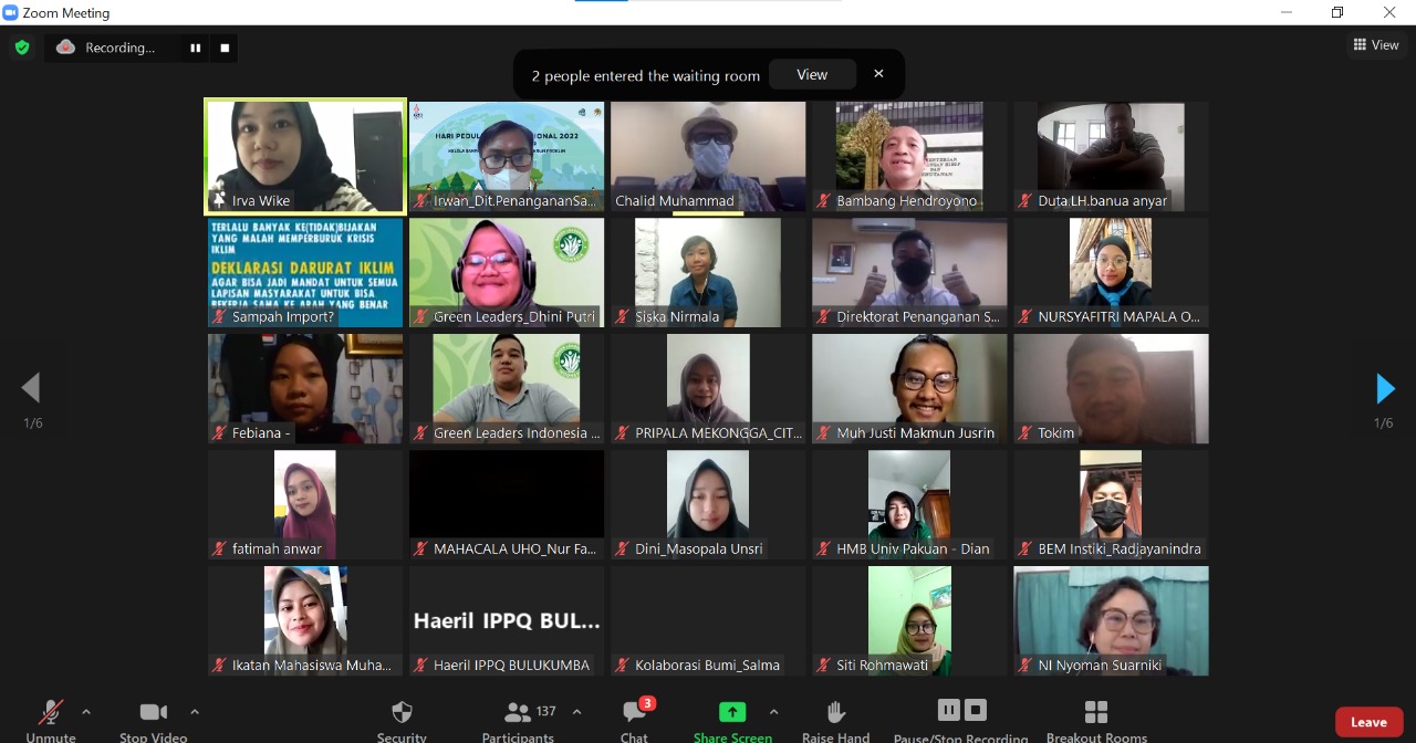 Webinar ini juga menyelenggarakan panel-panel diskusi yang diisi oleh para kaum muda juga Direktur Pengelolaan Sampah KLHK, Novrizal Tahar. Webinar ini juga dihadiri oleh Chalid Muhammad selaku founder Green Leadership Indonesia. (*)