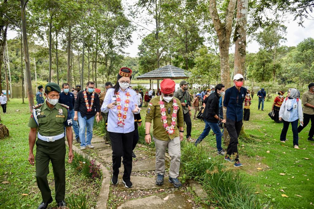 Di Danau Tambing ini, Wamen Alue Dohong juga meresmikan jalur treking sejauh 2 km yang dapat digunakan pengunjung untuk berkeliling. Wamen Alue Dohong pada kesempatan ini menyampaikan kepada para pemangku kepentingan yang hadir bahwa tempat wisata alam dapat digunakan sebagai forest healing tourism.