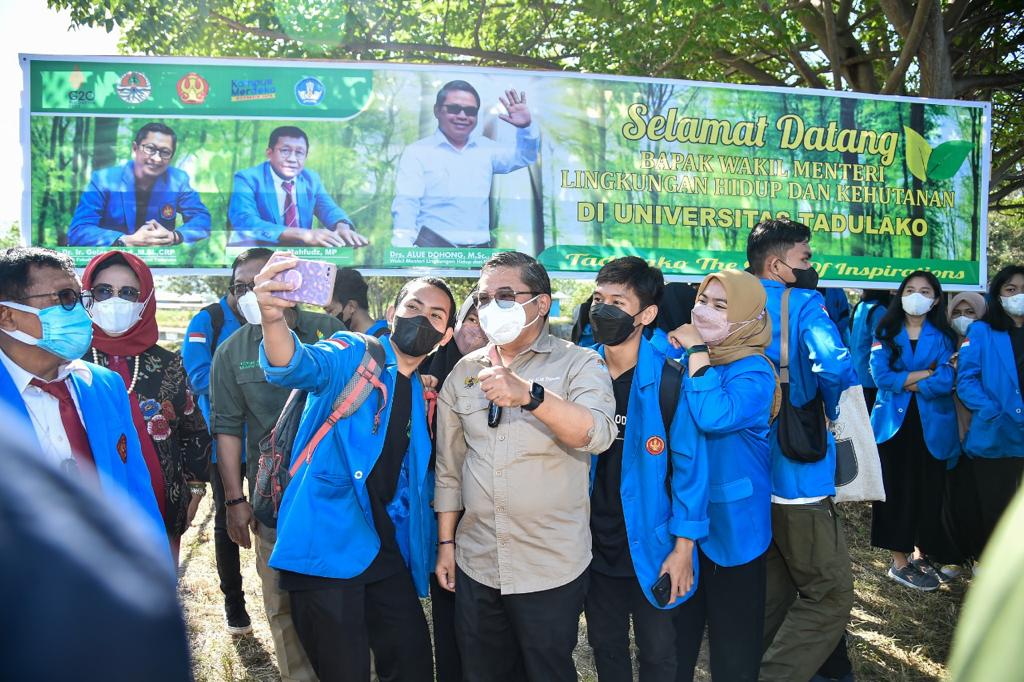 Wakil Menteri (Wamen) Lingkungan Hidup dan Kehutanan (LHK), Alue Dohong terlihat masih sangat fasih layaknya dosen saat ia memberikan kuliah umum di depan mahasiswa Fakultas Kehutanan Universitas Tadulako, Palu, Sulawesi Tengah (10/3/2022). Dunia akademis perguruan tinggi bukan sesuatu yang baru bagi Wamen Alue Dohong. Dirinya pernah aktif menjadi salah satu dosen pengajar di Kalimantan Tengah.