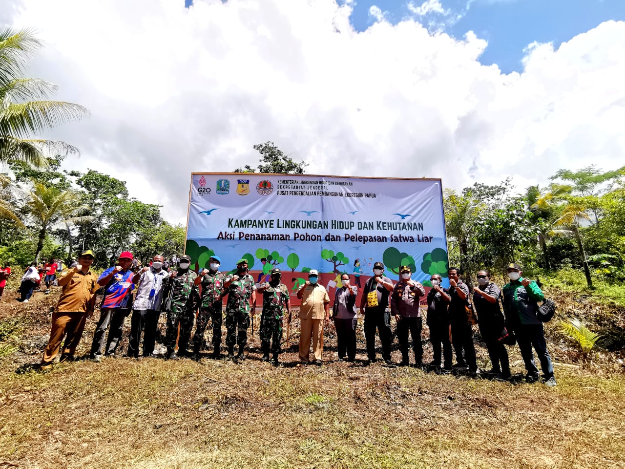 Dalam rangka memperingati Hari Bakti Rimbawan ke-39 yang jatuh pada tanggal 16 Maret 2022 serta sebagai salah satu bentuk kampanye lingkungan hidup, Pusat Pengendalian Pembangunan Ekoregion (P3E) Papua melakukan aksi penanaman pohon dan pelepasan satwa liar bertempat di Taman Burung dan Taman Anggrek di Kampung Ruar Bosnik pada Selasa (15/3/2022). Penamanan pohon ini mengusung tema sesuai dengan tema Hari Bakti tahun 2022 “Rimbawan Menjaga Lingkungan, Menyukseskan Presidensi G20 Indonesia”.
