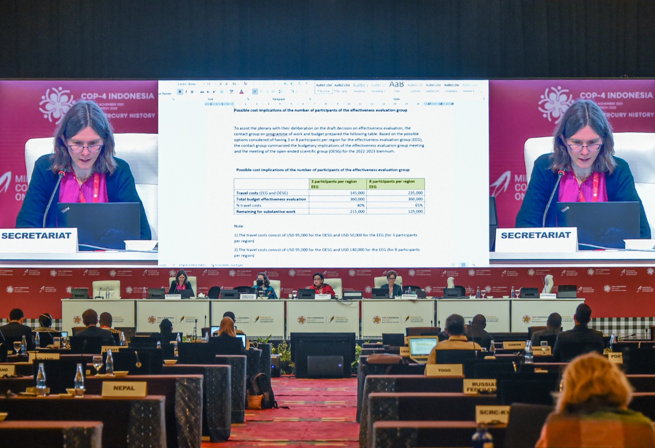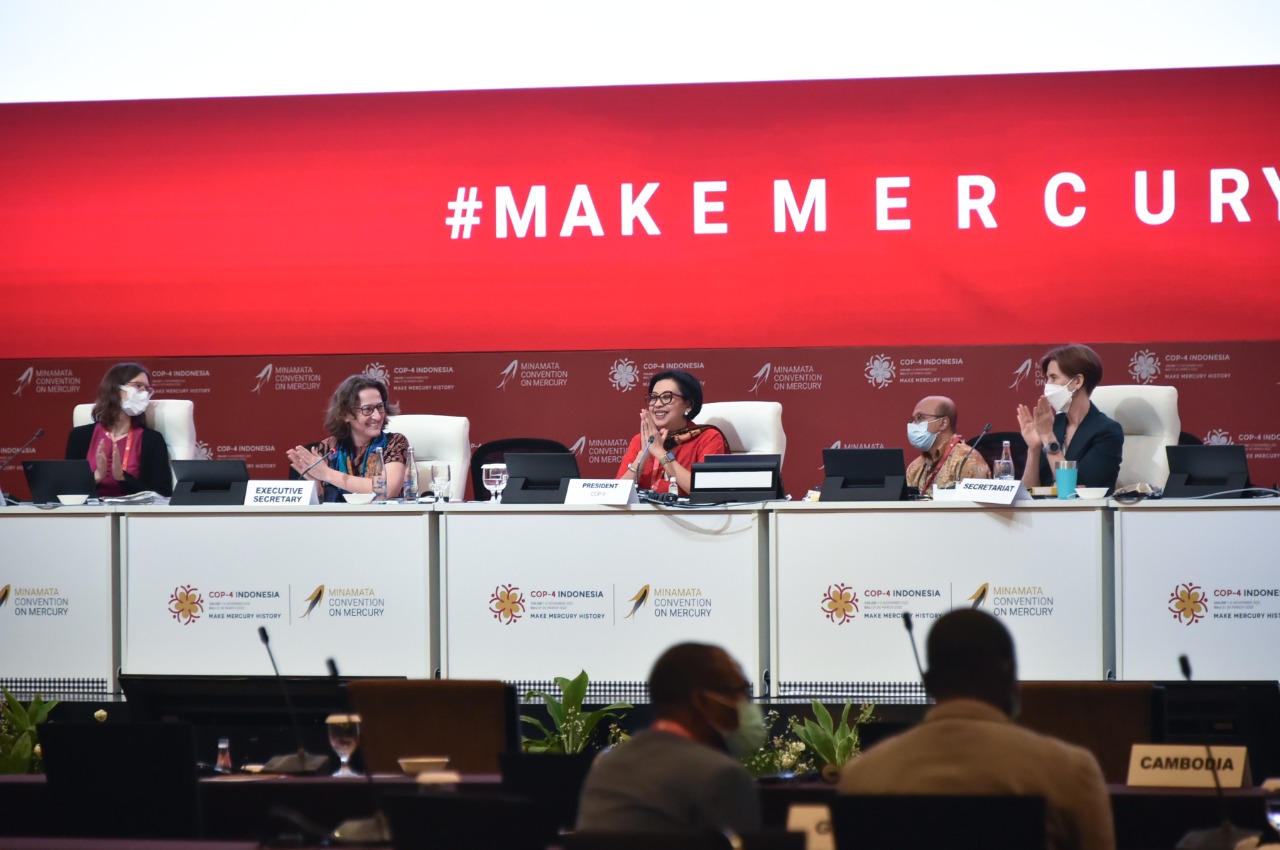 Direktur Jenderal Pengelolaan Sampah, Limbah dan B3 KLHK, Rosa Vivien Ratnawati yang juga selaku Presiden COP-4 Konvensi Minamata secara resmi menutup pertemuan COP-4 segmen kedua (COP-4.2) Konvensi Minamata di Bali (26/03/2022), dini hari waktu setempat. Rapat Pleno yang harusnya dijadwalkan seleasi petang hari sebelumnya, terpaksa diperpanjang hingga dini hari.