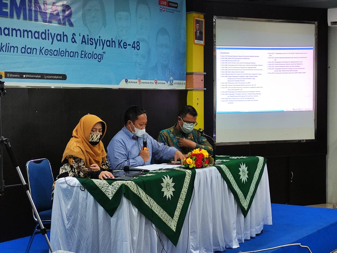Direktur Jenderal Pengendalian Perubahan Iklim Laksmi Dhewanthi mewakili Menteri LHK menyampaikan paparan "Perubahan Iklim dan Kesalehan Ekologi" di depan ratusan peserta yang hadir secara daring dan luring pada acara Seminar Pra-Muktamar Muhammadiyah di Universitas Muhammadiyah Pontianak pada hari Sabtu, 09/04/2022.