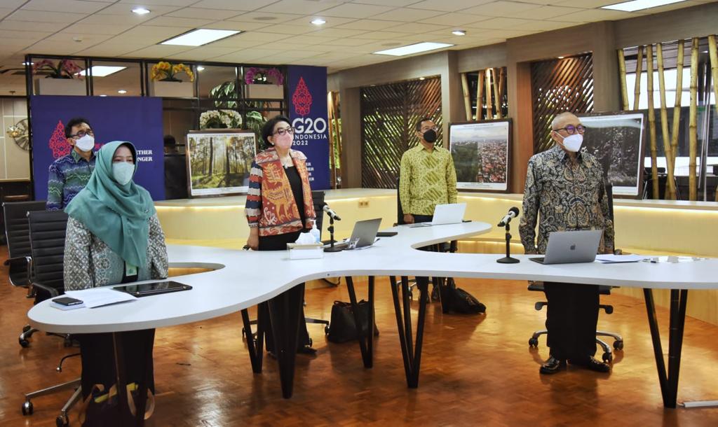 “Kebersamaan menghadapi pandemi Covid-19 menuju keseimbangan kehidupan baru dunia, mengamanatkan kepada Indonesia untuk memimpin proses pemulihan, tidak hanya dari sisi kesehatan dan perekonomian, tetapi dengan menginternalisasikan aspek lingkungan dan perubahan iklim. Indonesia ingin mengajak seluruh dunia untuk bahu membahu, saling mendukung untuk pulih bersama serta tumbuh lebih kuat dan berkelanjutan,” jelas Menteri Siti.