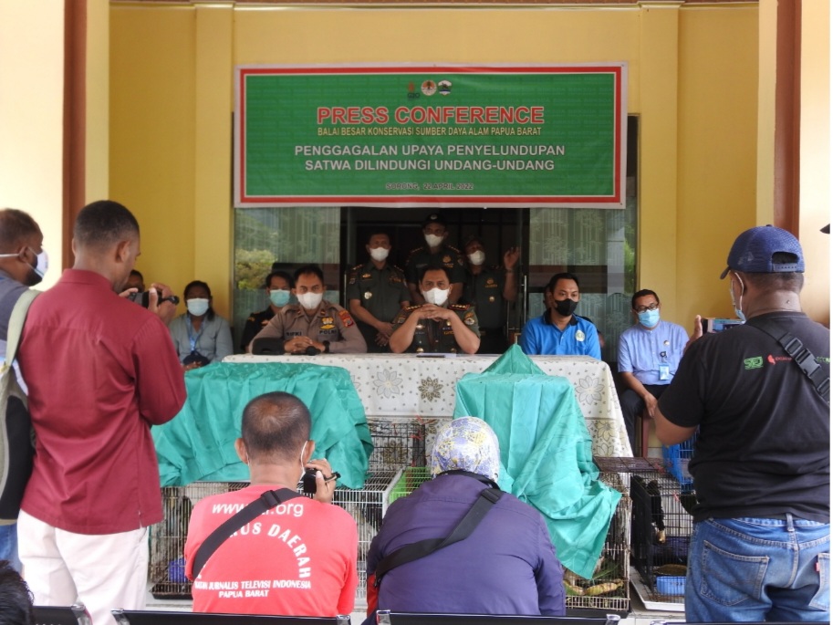 Tim Gabungan Balai Besar Konservasi Sumber Daya Alam (BBKSDA) Papua Barat, Balai Pengamanan dan Penegakan Hukum Lingkungan Hidup Kehutanan (BPPHLHK) Maluku Papua, Kesatuan Pelaksanaan Pengamanan Pelabuhan (KP3) Laut Sorong dan Karantina Pertanian Kelas I Sorong, berhasil menggagalkan penyeludupan 96 ekor satwa liar dilindungi berupa paruh bengkok dan 1 ekor satwa liar tidak dilindungi berupa jagal papua pada Rabu (20/4/2022).