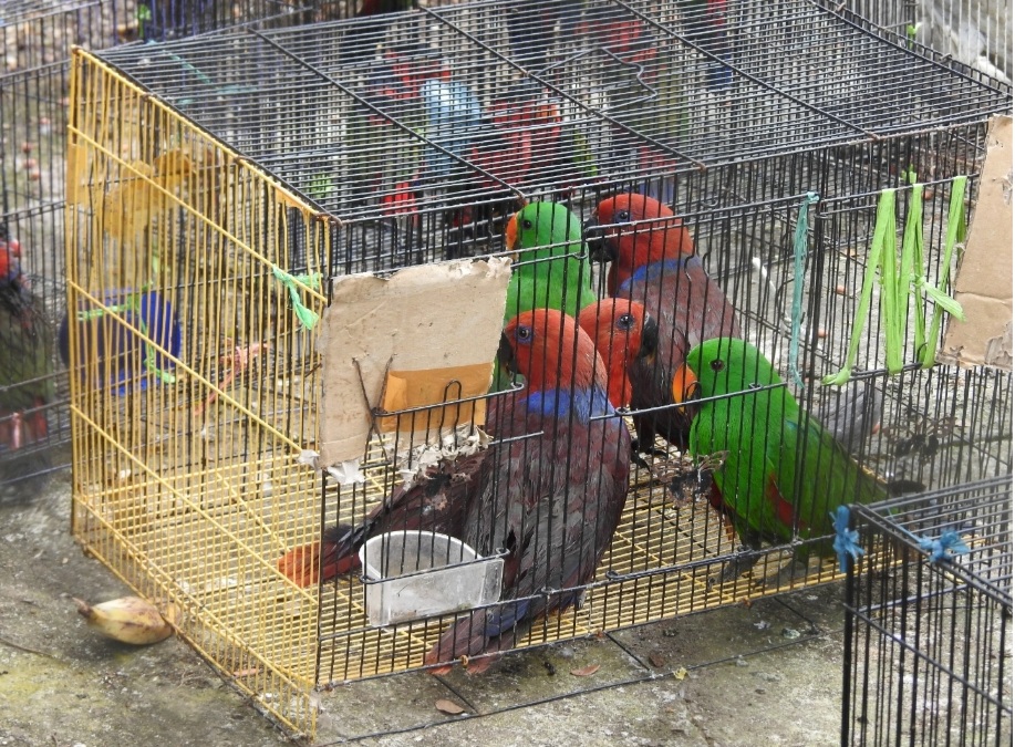 Sebanyak 96 Paruh bengkok yang diamankan terdiri dari, 2 ekor Mambruk Ubiat (Goura cristata), 11 ekor Nuri Bayan (Eclectus roratus), 1 ekor Nuri Kabare (Psittrichas fulgidus), 13 ekor Nuri Coklat (Chalcopsitta duivenbodei) , 7 ekor Kakatua Koki (Cacatua galerita), 40 ekor Kasturi Kepala Hitam (Lorius lory) , 5 ekor Perkici Pelangi (Trichoglossus haematodus), 6 ekor Nuri Kelam (Pseudeos fuscata), 11 ekor Cenderawasih Kuning Kecil (Paradisaea minor).