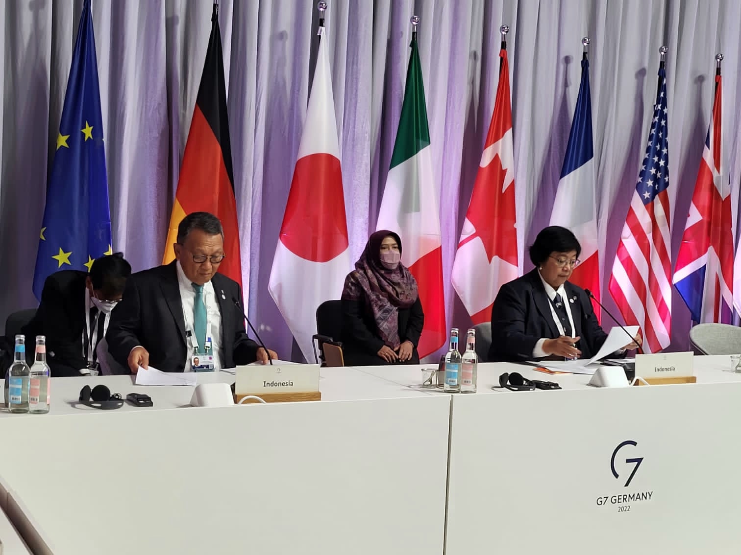 Menteri Siti saat memasuki lokasi pertemuan 26/5/2022) pagi waktu setempat, menyampaikan apresiasi atas undangan ini. Dirinya berpandangan bahwa forum bilateral dan multilateral seperti G20 dan G7 adalah mekanisme kerja sama yang sama pentingnya.