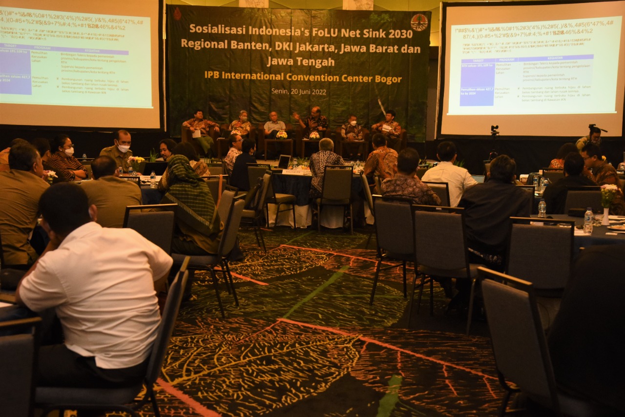 Dalam rangka mensosialisasikan secara luas pada para pihak terhadap Rencana Operasional IFNET 2030, Kementerian Lingkungan Hidup dan Kehutanan (KLHK) bersama Forum Pimpinan Lembaga Perguruan Tinggi Kehutanan Indonesia (FOReTIKA) menggelar Sosialisasi Indonesia’s FOLU Net Sink 2030 Regional Banten, DKI Jakarta, Jawa Barat, dan Jawa Tengah di Kota Bogor (20/06).