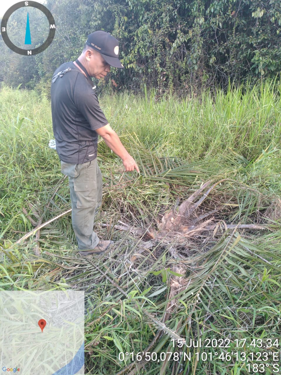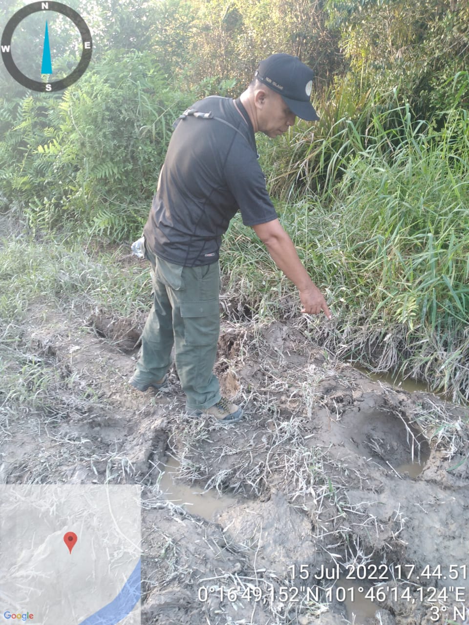 Hasil pantau tim operasi di lapangan ditemukan jejak gajah liar, tempat mandi atau istirahat dan bekas tanaman sawit yang di makan gajah liar, dari analisa tim mahot gajah TN Tesso Nilo bahwasanya jejak gajah yang di temukan masih baru dan diperkiran gajah liar tersebut lewat pada hari Kamis kemarin.