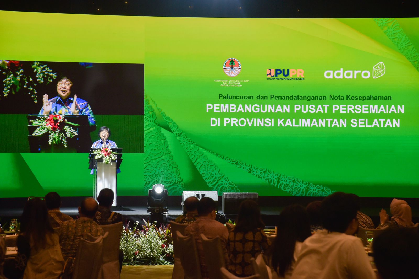 Menteri LHK Siti Nurbaya dalam sambutannya mengatakan, "Saya memberikan apresiasi yang sebesar-besarnya kepada Kementerian Pekerjaan Umum dan Perumahan Rakyat serta PT. Adaro Energy Indonesia Tbk. yang telah bersama-sama berkolaborasi membangun pusat persemaian di Kecamatan Liang Anggang bersama Kementerian LHK melalui skema kolaborasi kerja Public Private Partnership. Kolaborasi ini menjadi sangat penting untuk mendukung keberhasilan rehabilitasi hutan dan lahan di wilayah Provinsi Kalimantan Selatan dan sekitarnya," ucapnya.
