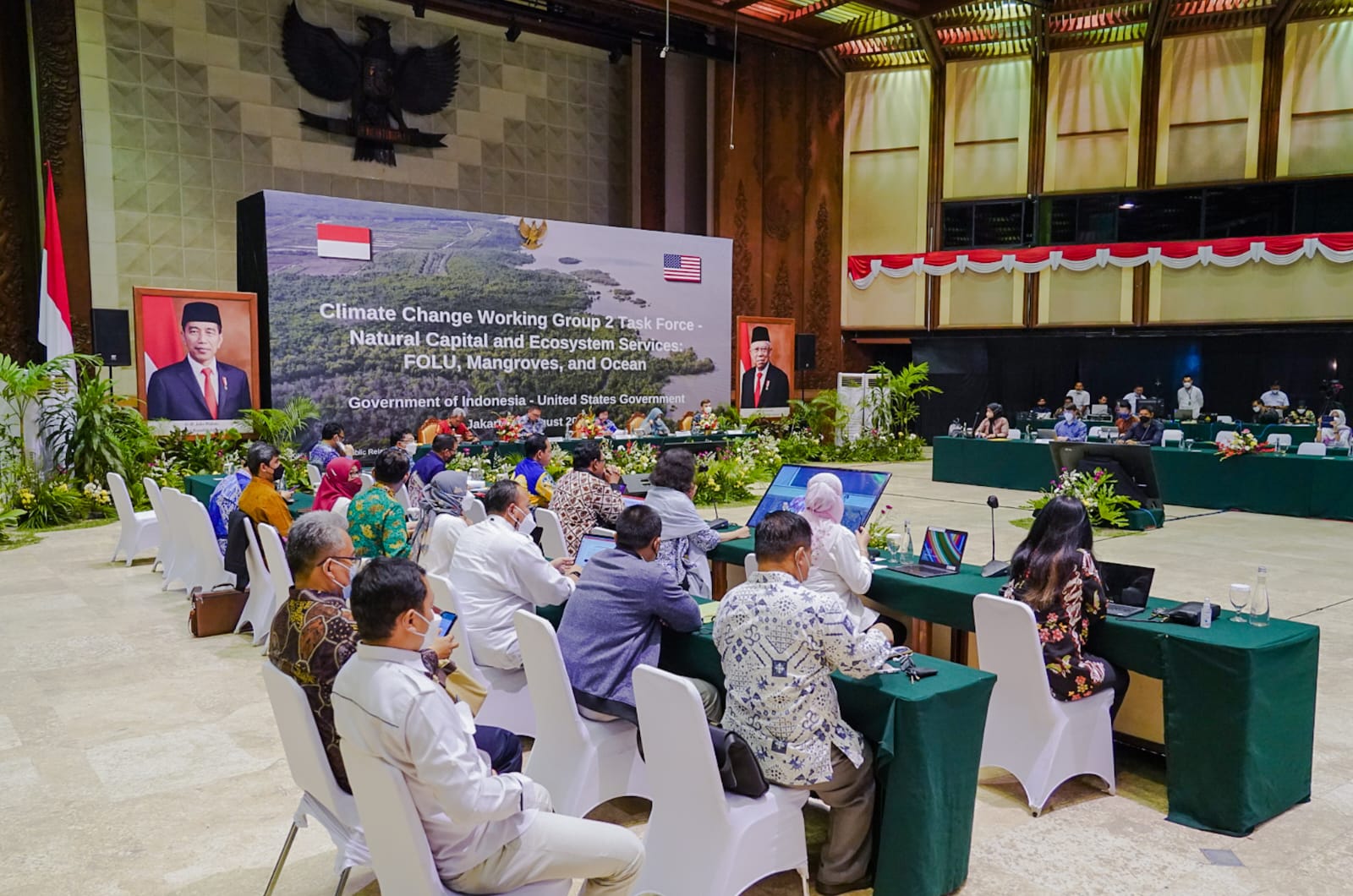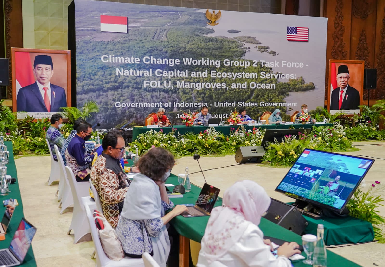 Hal tersebut disampaikan Menteri Siti dalam sambutannya pada pertemuan Gugus Tugas 2, Kelompok Kerja Perubahan Iklim mengenai Natural Capital and Ecosystem Services: FOLU, Mangroves, and Ocean, secara hybrid pada Rabu malam (3/8). Tim Amerika Serikat (AS) yang hadir dipimpin oleh Robert Blake selaku Advisor to the US SPEC John Kerry. Sedangkan delegasi AS terdiri dari Toby Hedger, Department of State - OES/EGC; Daniel Kandy, Department of State - OES/EGC; Stephanie Mann - United States Forest Service (USFS); Lauren Wenzel - National Oceanographic and Atmospheric Administration - Marine Protected Areas Center; Gabrielle Johnson - NOAA MPA International Capacity Building; Heather Coll - NOAA Senior International Affairs Specialist for East and Southeast Asia; Alec Shub - NOAA representative; Lisa Vaughan - NOAA representative; Nick Austin, Department of State; dan Mark Newton, USAID.
