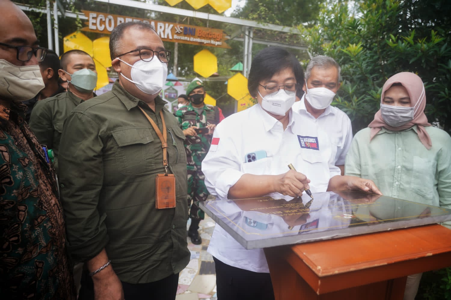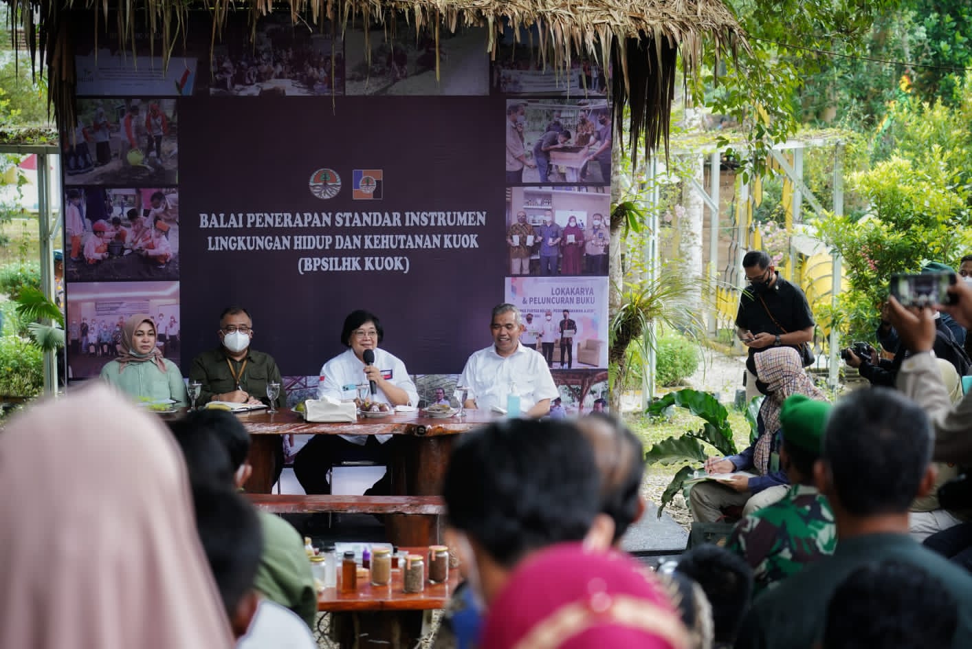 Menteri LHK Siti Nurbaya meresmikan Eco Bee Park yang terletak di Arboreatum Balai Penerapan Standarisasi Instrumen Lingkungan Hidup dan Kehutanan (BPSI LHK) Kuok, Kabupaten Kampar, Provinsi Riau, Minggu 14 Agustus 2022.