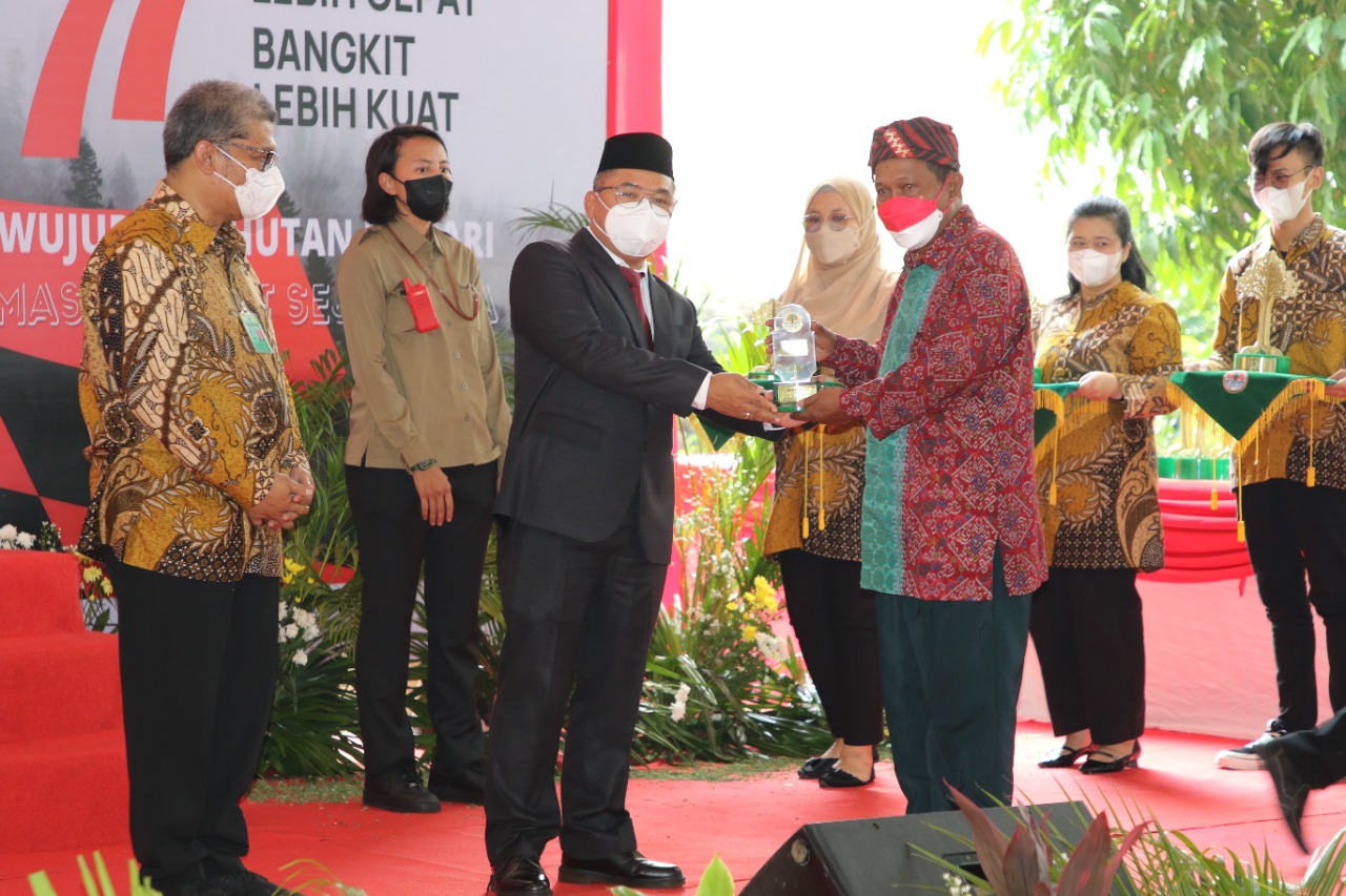 "Marilah kita semua meningkatkan peran masing-masing untuk membangun dan menyelamatkan hutan menuju cita-cita mulia yaitu Hutan Lestari untuk Kesejahteraan Masyarakat yang Berkeadilan dan Berkelanjutan," ujar Wamen Alue mengakhiri sambutannya.
