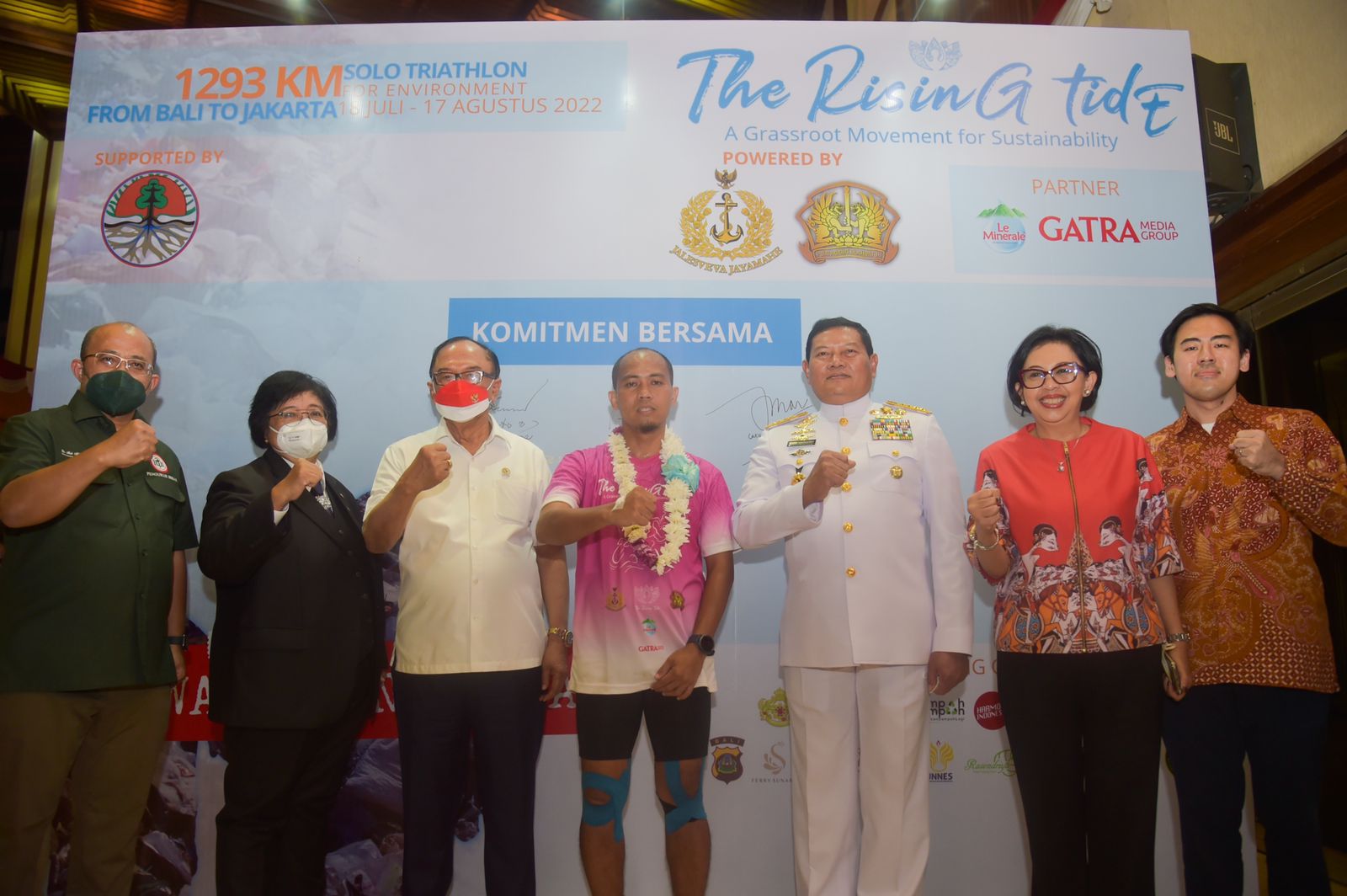 Aksi solo Triathlon ini dibantu dan didukung penuh oleh jajaran Angkatan Laut Republik Indonesia di bawah komando KSAL Yudo Margono, juga dari Penglingsir Puri Blahbatuh, Mayora Grup, Harmoni Indonesia, Asosiasi Daur Ulang Plastik Indonesia, Ikatan Dokter Indonesia, Gatra Media Group, Ketua MPR RI Bambang Soesatyo, serta Anggota Dewan Pertimbangan Presiden Sidarto Danusubroto.