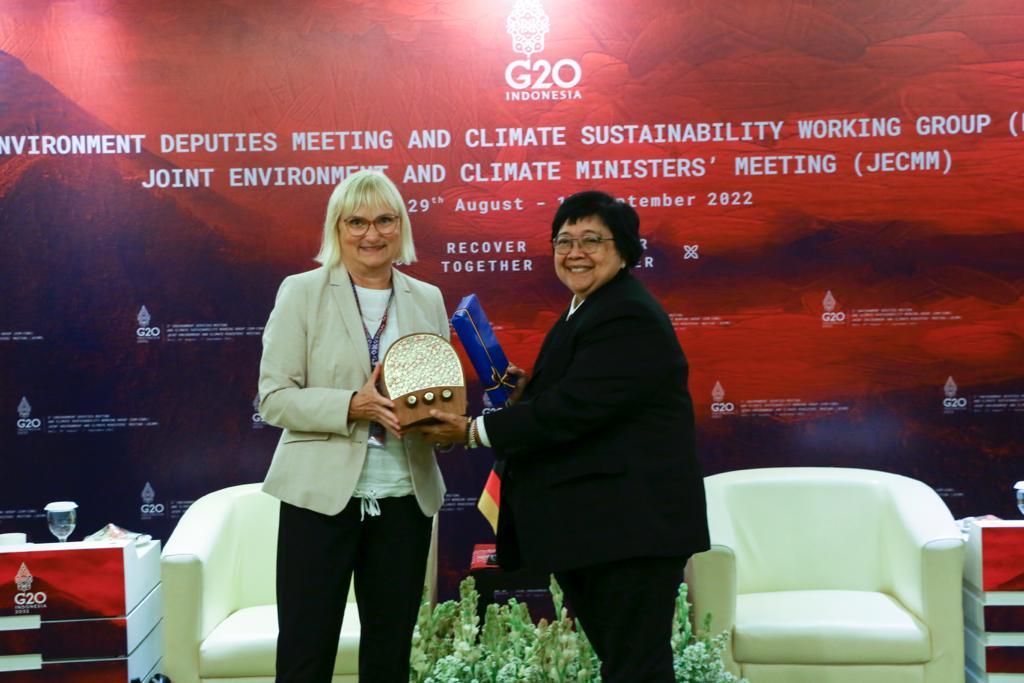 Pertemuan dengan Parliamentary State Secretary of BMUV of Germany, Bettina Hoffmann menyampaikan terima kasih atas undangan dan dukungannya kepada Indonesia sebagai Presidensi G20. Jerman berterima kasih atas kerja sama yang telah lama terjalin selama ini di banyak proyek, khususnya di bidang perlindungan keanekaragaman hayati dan iklim, perlindungan hutan dan lahan gambut serta rehabilitasi dan memerangi polusi plastik di lautan, Jerman juga menyampaikan siap untuk pertukaran dan dukungan lebih lanjut.