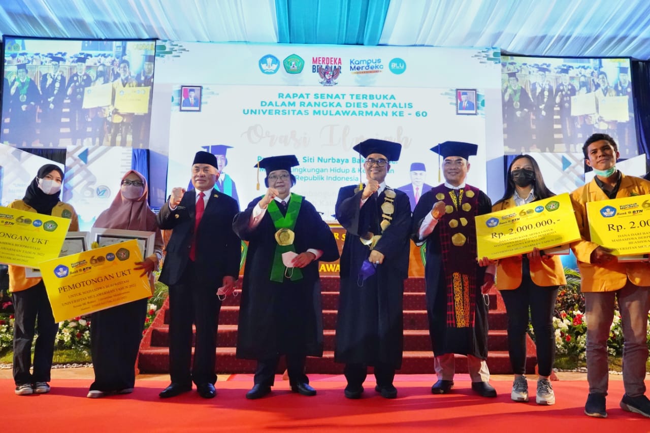 Dalam sambutannya, Rektor Unmul Prof. Masjaya, menyampaikan Rapat Senat Terbuka dalam rangka Dies Natalis Unmul ke-60 sangat istimewa dengan hadirnya Menteri LHK dan Gubernur Kaltim. Terlebih Menteri LHK menyampaikan orasi yang relevan dengan kiprah Unmul selama ini.
