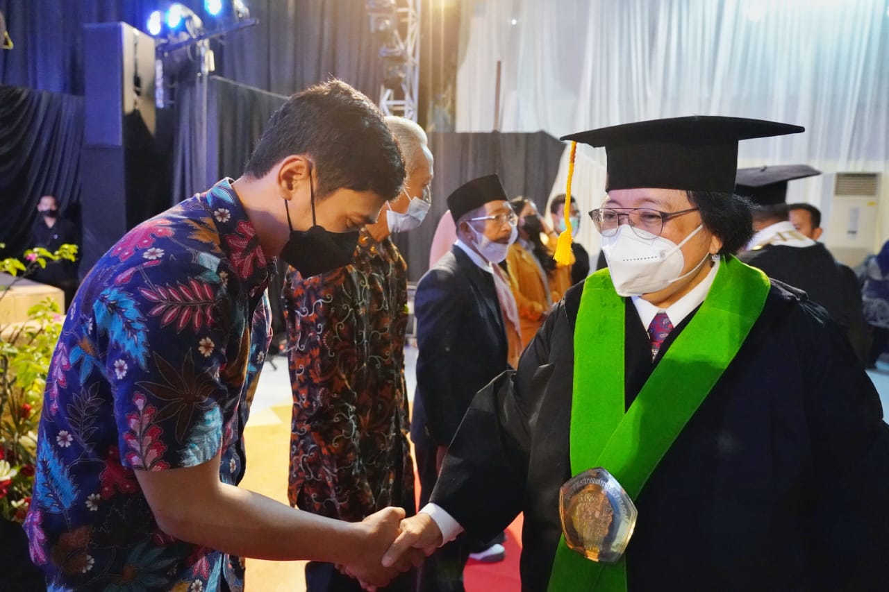 Sebagai bagian penutup Orasi Ilmiahnya, Menteri Siti menitipkan beberapa pesan kepada masyarakat di Provinsi Kalimantan Timur, termasuk Civitas Akademika Universitas Mulawarman. Pertama, kehadiran IKN Nusantara di bumi Kalimantan Timur diharapkan dapat menjadi momentum, sebagai bukti konkrit dari peradaban bangsa Indonesia. Ada sebuah masa dimana kita dapat menunjukkan kepada dunia bahwa Indonesia mampu membangun mengembalikan hutan hujan tropika basah, yang tidak hanya berkontribusi positif terhadap upaya penurunan emisi gas rumah kaca, namun juga membangun pusat perekonomian yang baru dengan sinergi pembangunan ekologi dan sosial. Kedua, kita sekaligus dapat menjaga genetic resources sebagai kekayaan Indonesia, modal dasar pembangunan masa depan. Ketiga, Provinsi Kalimantan Timur dengan modalitas hutan yang luas, modalitas sosial tinggi, tentunya diharapkan dapat menjadi keunggulan utama daerah.