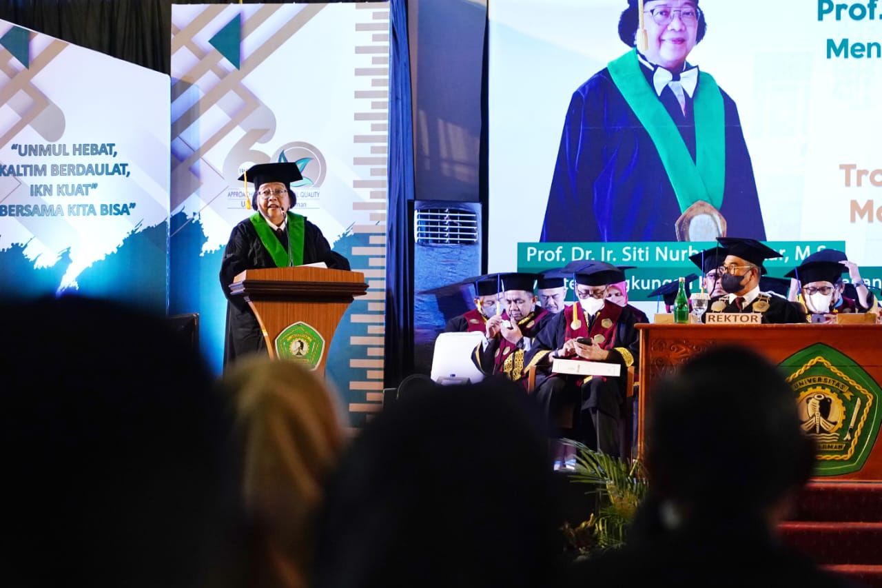Menteri LHK Siti Nurbaya menyampaikan orasi ilmiah dalam rangka Dies Natalis Universitas Mulawarman (Unmul), di Samarinda, Kalimantan Timur, pada Selasa (27/9). Dies Natalis Unmul yang ke-60 mengusung tema "Unmul Hebat, Kaltim Berdaulat, IKN Kuat".