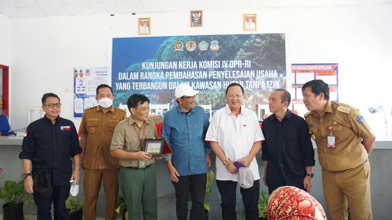 Kunjungan dan pertemuan ini juga diikuti segenap anggota Komisi IV DPR RI, Dirjen Penegakan Hukum Lingkungan Hidup dan Kehutanan KLHK Rasio Ridho Sani, Direktur Pemanfaatan Jasa Lingkungan Kawasan Konservasi KLHK, Direktur Penegakan Hukum Pidana KLHK, Kepala UPT KLHK di Sulawesi Utara, Camat Bunaken Kepulauan, serta perwakilan perusahaan dan atau masyarakat yang memiliki usaha telah terbangun tanpa izin.