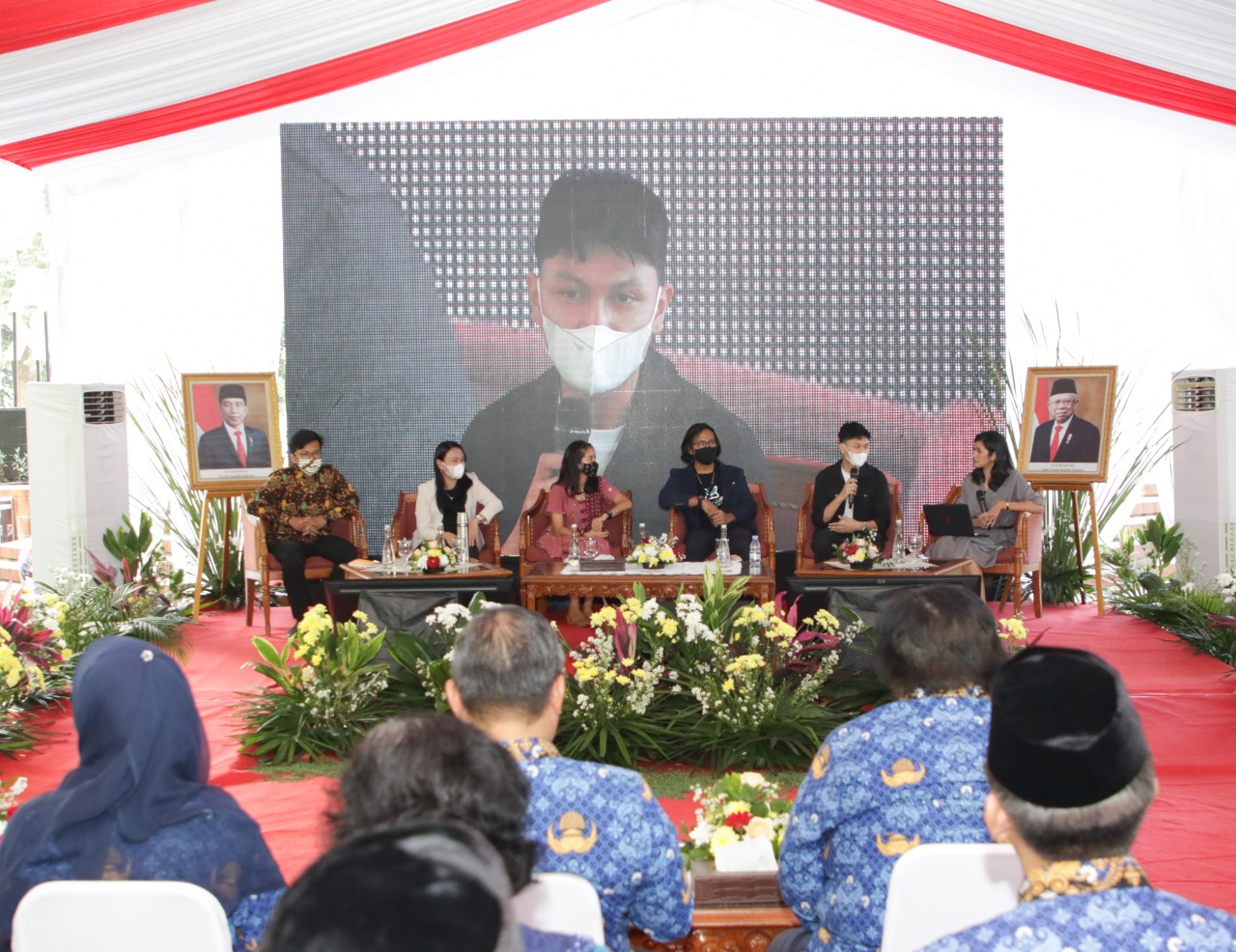 Kemudian, sesi talkshow generasi muda “Bangun Bangsa, Gaya Ramah Lingkungan”, menghadirkan narasumber CEO Nusantara United/Inisiator Proyek Micro Hydro for Indonesia, Gamma Abdurrahman Thohir; Chief Commercial Officer ECOXYZTEM, Andreas Pandu Wirawan; Co-Founder Kebun Kumara, Soraya Cassandra; Ketua Umum Asosiasi Bank Sampah Indonesia/CEO Xaviera Global Synergy, Wilda Yanti; Green Leadership Indonesia, Danis Syahroni, dengan moderator Agita Mahlika. Adapun para peserta kegiatan merupakan para siswa dari sejumlah sekolah yang telah berhasil meraih gelar Sekolah Adiwiyata, dan pegawai KLHK pusat dan daerah.