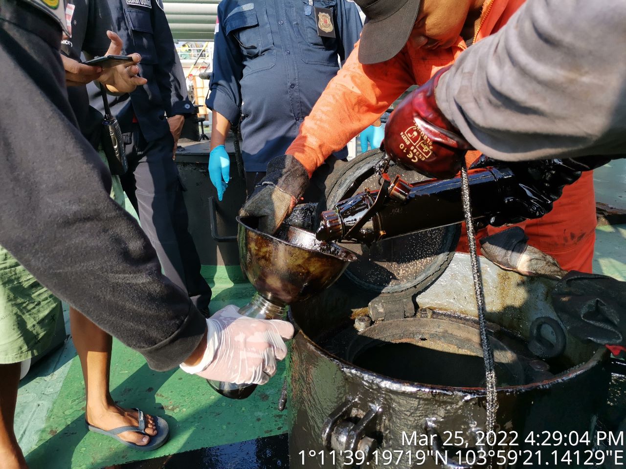 “Pada tanggal 4 Maret 2022, tim patroli mengamankan kapal MT Tutuk GT 7463 di perairan Batu Ampar, Kota Batam, Provinsi Kepulauan Riau yang membawa muatan 5.500 Metrik Ton yang diduga limbah B3. Atas dasar laporan tersebut, Penyidik KLHK melakukan pendalaman pengumpulan bahan dan keterangan (pulbaket) pengambilan sampel berupa minyak hitam yang diduga limbah B3, analisa sampel di laboratorium terakreditasi, penyitaan muatan kapal, penyitaan dokumen, pemeriksaan saksi-saksi dan pemeriksaan ahli,” ungkap Yazid.