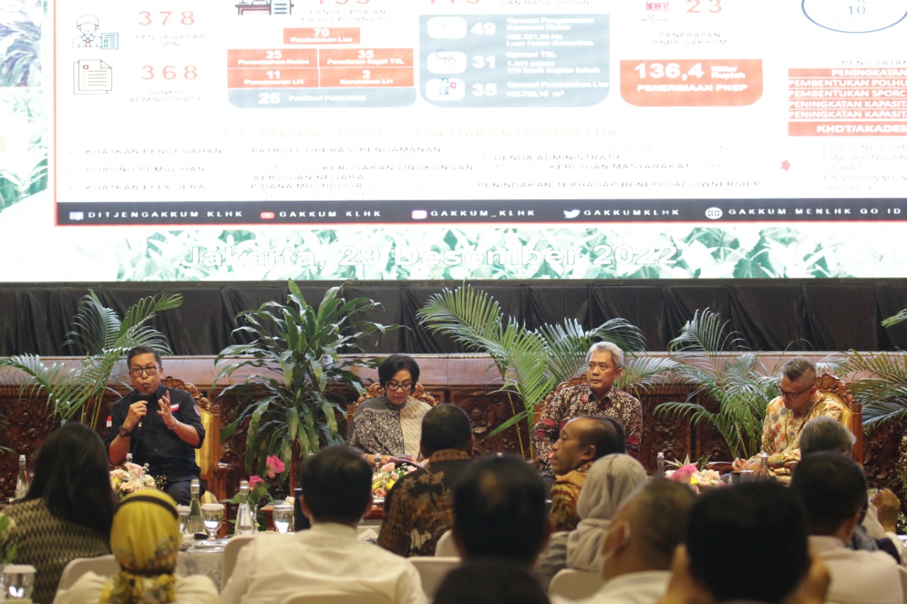 “Kami terus melakukan pencegahan melalui patrol-patroli operasi pengamanan kawasan, dan juga melakukan penegakkan hukum yang dapat memulihkan kerugian yang diderita oleh para korban, baik itu lingkungan hidup, masyarakat, dan negara,” jelas Rasio Ridho Sani Direktur Jenderal Penegakan Hukum Lingkungan Hidup Kehutanan (Gakkum), dalam acara Refleksi Akhir Tahun 2022 Kementerian Lingkungan Hidup dan Kehutanan (KLHK) yang berlangsung secara luring dan daring, di Jakarta pada tanggal 29 Desember 2022.
