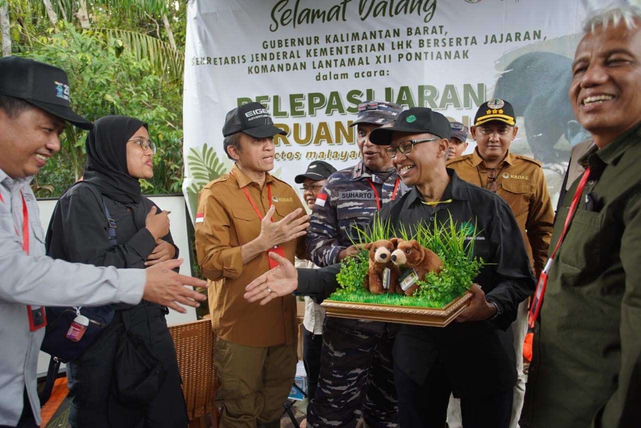 Kementerian Lingkungan Hidup dan Kehutanan (KLHK) melepasliarkan 2 (dua) individu Beruang Madu (Helarctos malayanus) ke habitat alaminya di areal PT. Menggala Rambu Utama (PT.MRU), Kabupaten Kubu Raya, Minggu, (22/01/2023).