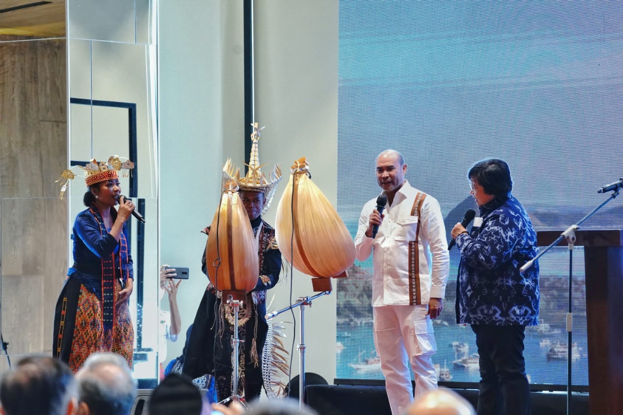 Kick Off Sosialisasi Sub Nasional Indonesia’s FOLU Net Sink 2030 di 22 provinsi ditandai dengan dimainkannya alat musik tradisional khas NTT, Sasando, oleh Menteri Siti dan Gubernur Viktor.