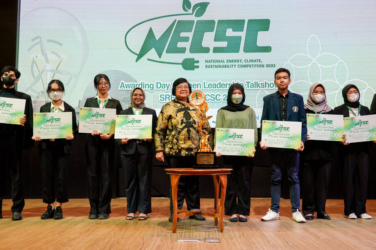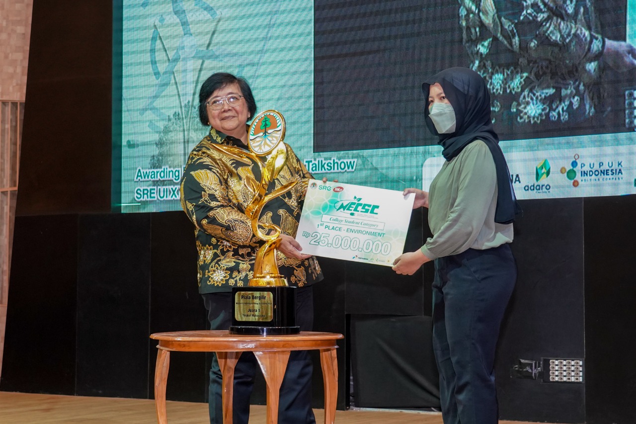 Menteri Lingkungan Hidup dan Kehutanan (LHK), Siti Nurbaya pada Minggu (12/2/2023) di Universitas Indonesia memberikan penghargaan kepada para pemenang kompetisi karya tulis nasional terkait energi, iklim dan keberlanjutan khususnya pada kategori lingkungan. Kegiatan lomba ini diselenggarakan oleh Society of Renewable Energy (SRE) dan Rakyat Merdeka dengan target peserta para generasi muda.