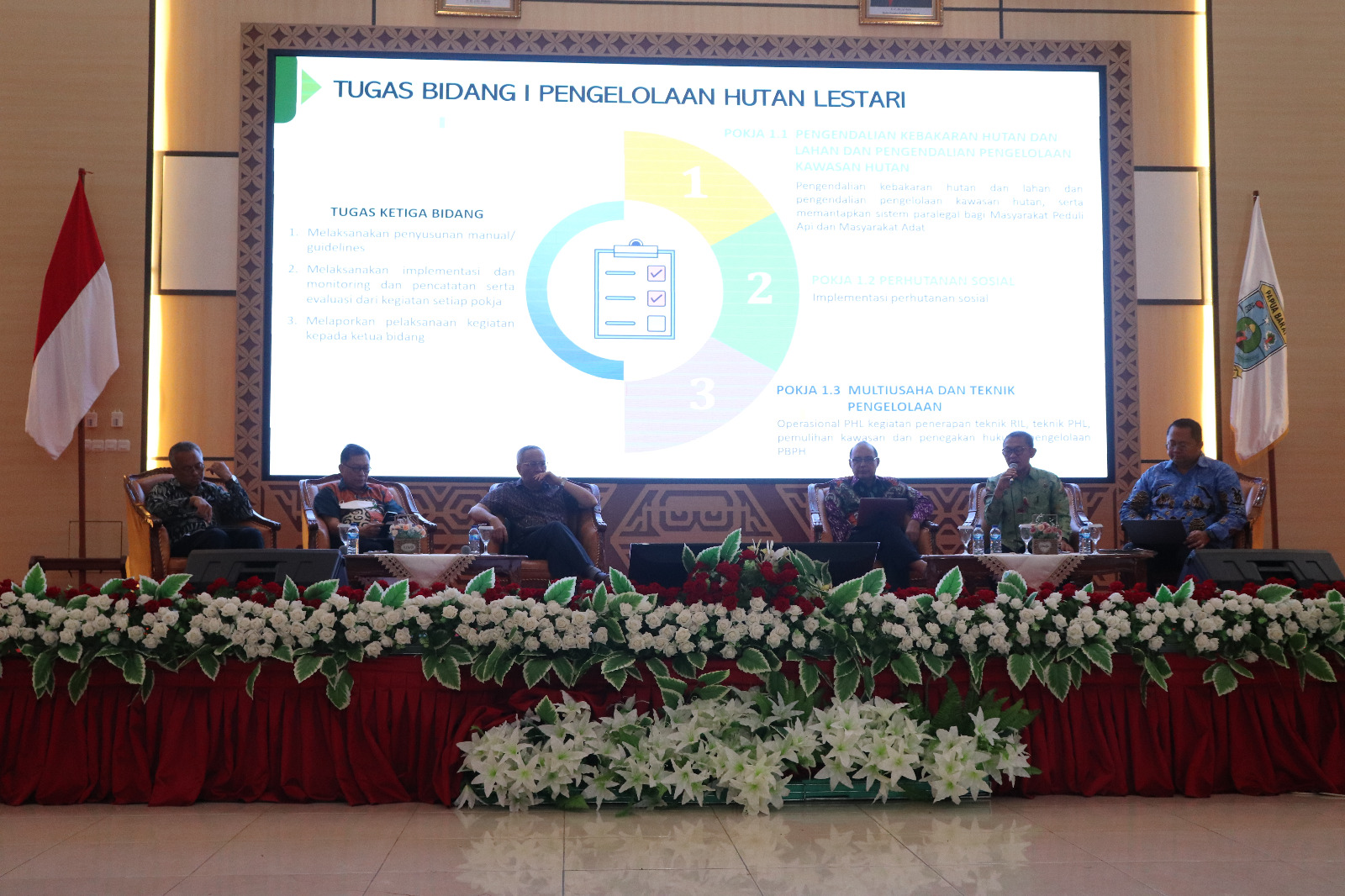 Dalam rangkaian sosialisasi Sub Nasional di Provinsi Papua Barat ini, dilaksanakan sesi pemaparan rencana kerja pada 5 bidang FOLU Net Sink 2030, yaitu: Bidang I Pengelolaan Hutan Lestari yang disampaikan oleh Ir. Istanto, M.Sc; (2) Bidang II Peningkatan Cadangan Karbon oleh Ir. Helmi Basalamah, MM; (3) Bidang III Konservasi disampaikan oleh Dr. Ir. Wiratno, M.Sc; (4) Bidang IV Pengelolaan Ekosistem Gambut oleh Yth. Bp. Ir. Noviar, M.B.A; dan (5) Bidang V Instrumen dan Informasi oleh Yth. Bp. Widhi Handoyo, SKM., MT.