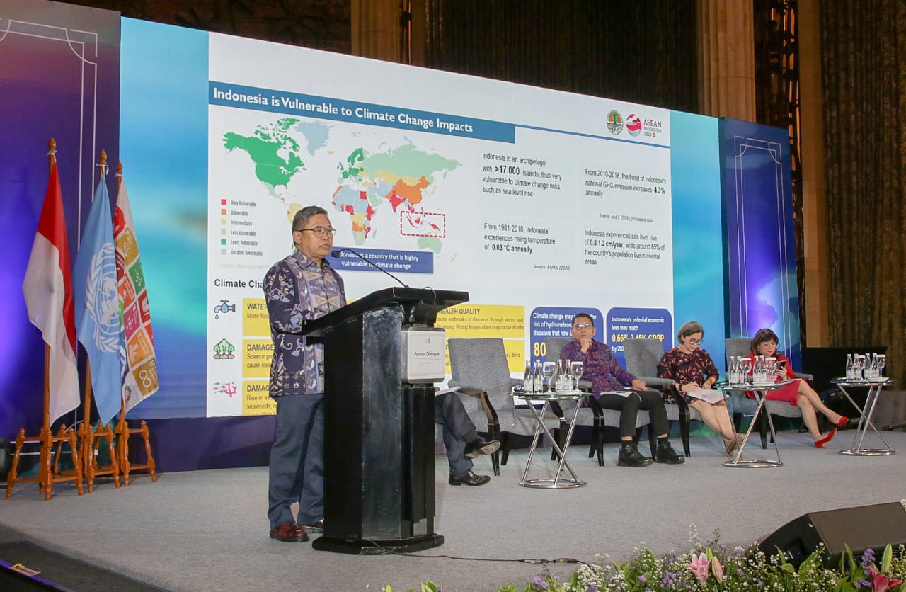 Selain Wamen LHK Alue Dohong, narasumber pada sesi diskusi panel yaitu Direktur Jenderal Energi Baru, Terbarukan, dan Konservasi Energi (EBTKE) Kementerian ESDM Dadan Kusdiana, Kepala Badan Kebijakan Pembangunan Kesehatan (BKPK) Kemenkes Syarifah Liza Munira, dan Wakil Ketua Umum Kadin Koordinator Bidang Maritim, Investasi, dan Luar Negeri Shinta W. Kamdani.
