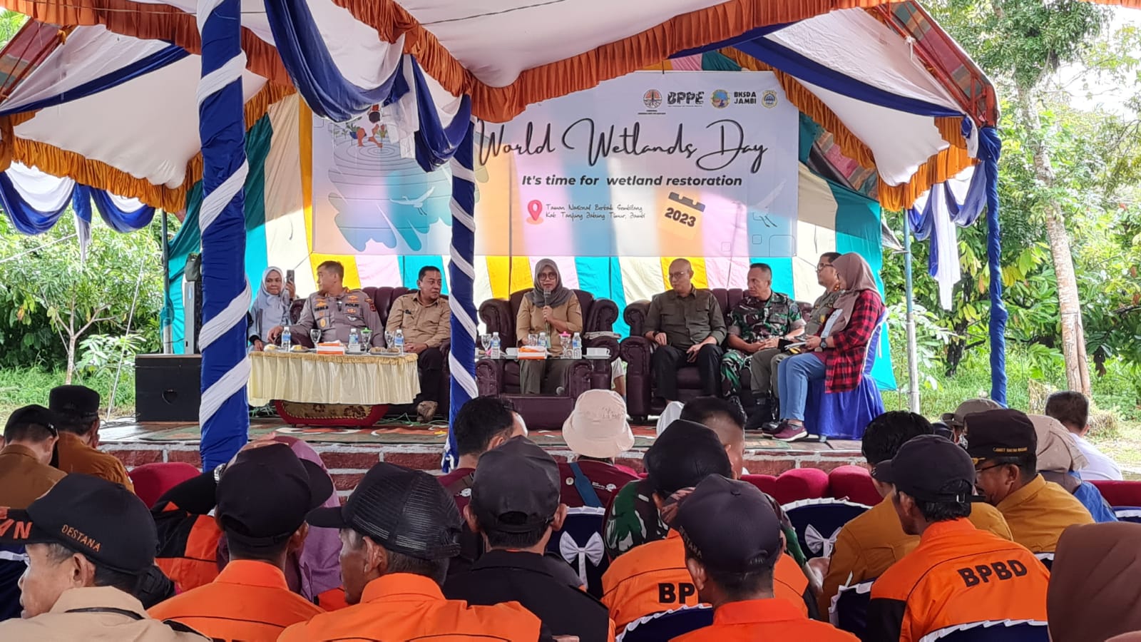 Peringatan Hari Lahan Basah (World Wetlands Day/WWD) Tahun 2023 ditandai dengan pelaksanaan rangkaian kegiatan penanaman pohon, pelepasliaran satwa dan dialog yang dipusatkan di kawasan Taman Nasional Berbak Sembilang Jambi, pada Kamis (23/9).