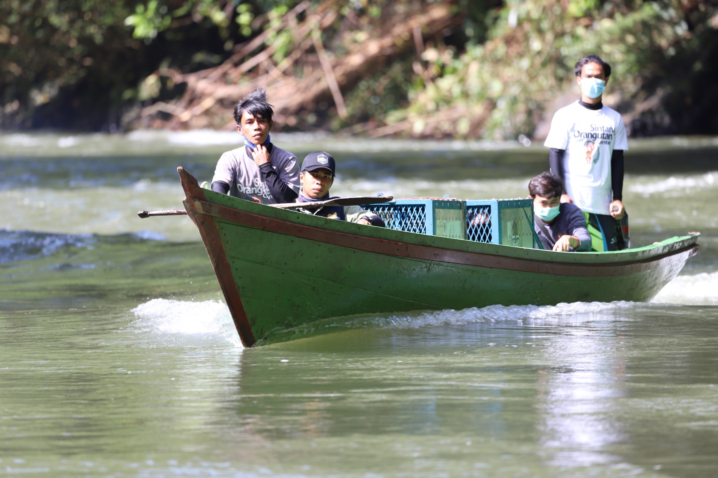 Perjalanan tim dalam kegiatan pelepasliaran ini ditempuh melalui jalur darat dari Kabupaten Sintang menuju Kabupaten Kapuas Hulu selama 6 jam perjalanan. Kemudian perjalanan dilanjutkan melalui jalur air menggunakan perahu menuju titik pelepasliaran selama kurang lebih 5 jam perjalanan menuju titik lokasi pelepasliaran. Kondisi kesehatan satwa selama perjalanan menuju lokasi pelepasliaran terus dipantau dan didampingi oleh tim medis BKSDA Kalbar dan YPOS.
