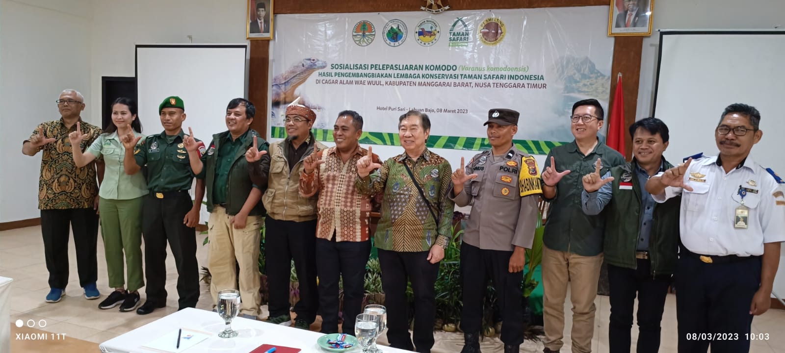 Kementerian Lingkungan Hidup dan Kehutanan melalui Balai Besar Konservasi Sumber Daya Alam Nusa Tenggara Timur (BBKSDA NTT) bersama lembaga konservasi Taman Safari Indonesia (TSI) melakukan sosialisasi dalam rangka persiapan habituasi dan pelepasliaran Komodo (Varanus komodoensis) di Kupang, Rabu (8/3). Satwa tersebut merupakan hasil pengembangbiakan TSI Bogor yang akan dilepasliarkan ke habitat aslinya yaitu Cagar Alam Wae Wuul, Kabupaten Manggarai Barat, Nusa Tenggara Timur.