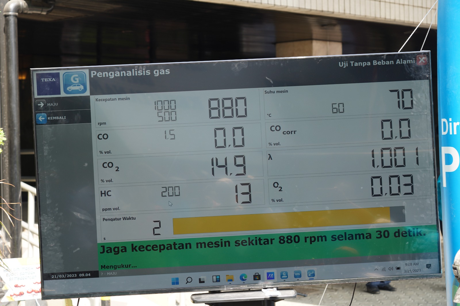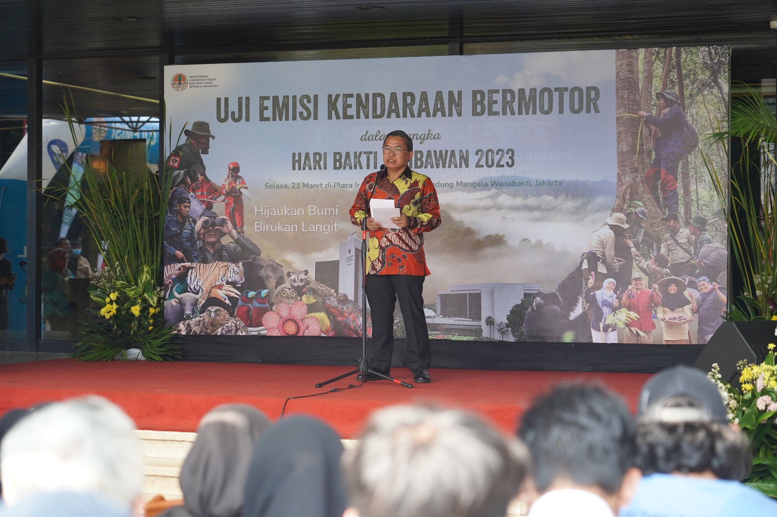 Kementerian LHK kembali menggelar kegiatan uji emisi kendaraan bermotor sebagai rangkaian peringatan Hari Bakti Rimbawan Tahun 2023 di Jakarta, Selasa (21/3). Kegiatan ini selaras dengan tema yang diusung yaitu "Hijaukan Bumi Birukan Langit".