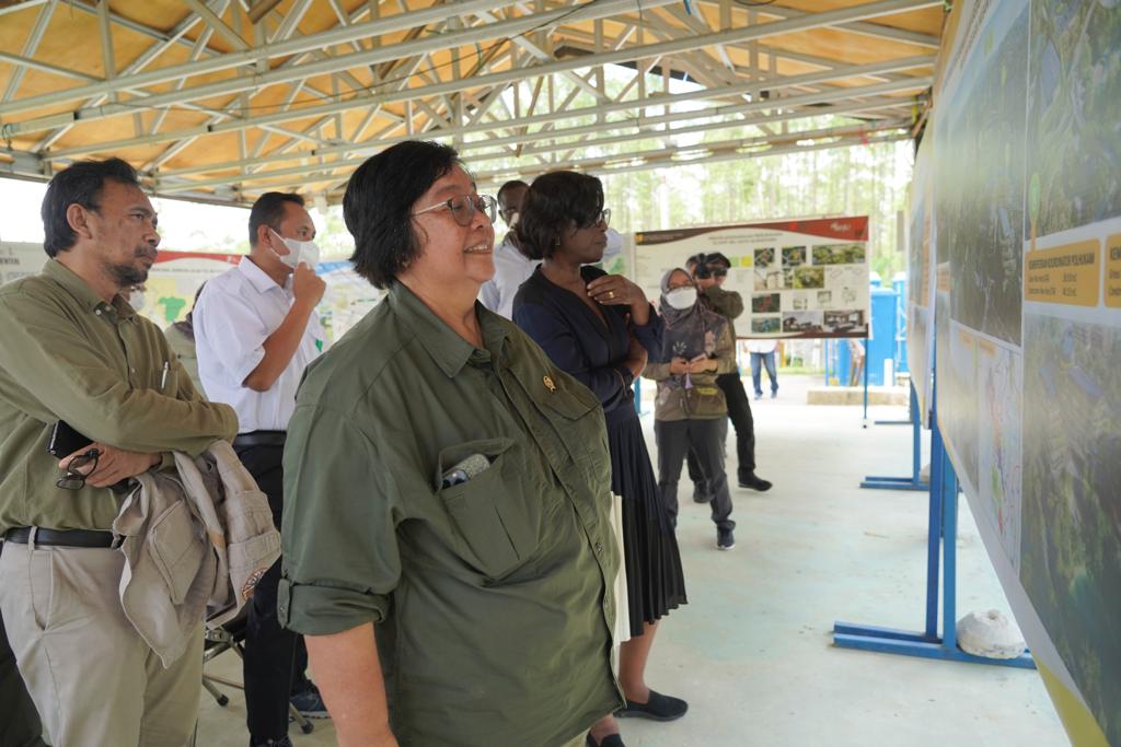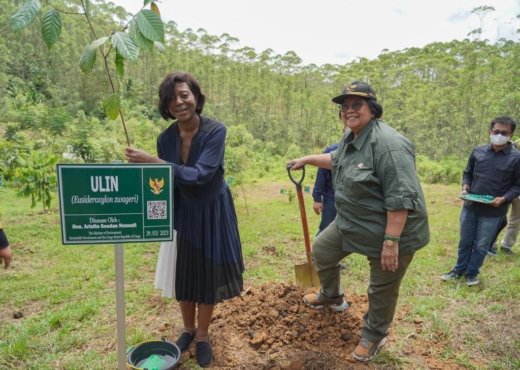 Usai mengunjungi Persemaian Rumpin di Kab. Bogor (27/3/2023), Menteri Lingkungan Hidup dan Kehutanan (LHK) Republik Indonesia (RI), Siti Nurbaya mengajak Menteri Lingkungan Hidup, Pembangunan Berkelanjutan, Republik Kongo, Arlette Soudan-Nonault meninjau kawasan Titik Nol Ibu Kota Negara dan Persemaian Mentawir, di Prov. Kalimantan Timur pada Rabu (29/3/2023).