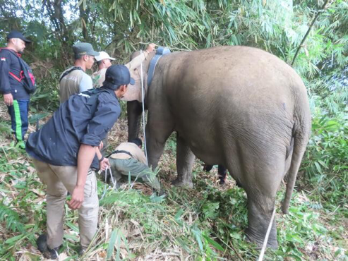 “Kami juga melakukan koleksi sampel darah untuk tujuan pemeriksaan DNA, hematologi, dan kimia darah. Hal ini dilakukan untuk mengetahui kondisi kesehatan gajah secara umum. Kami juga melakukan penyuntikan antibiotik long acting untuk mencegah terjadinya infeksi sekunder pada bekas tembak bius, penyuntikan obat anti stress serta untuk memperkuat daya tahan tubuh gajah,” tambah Erni.