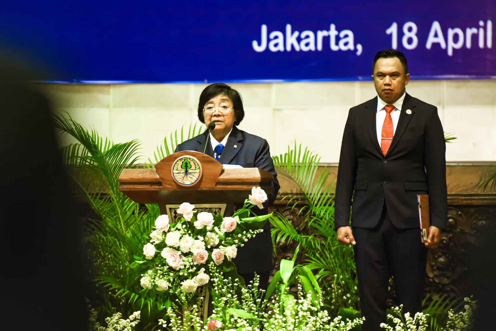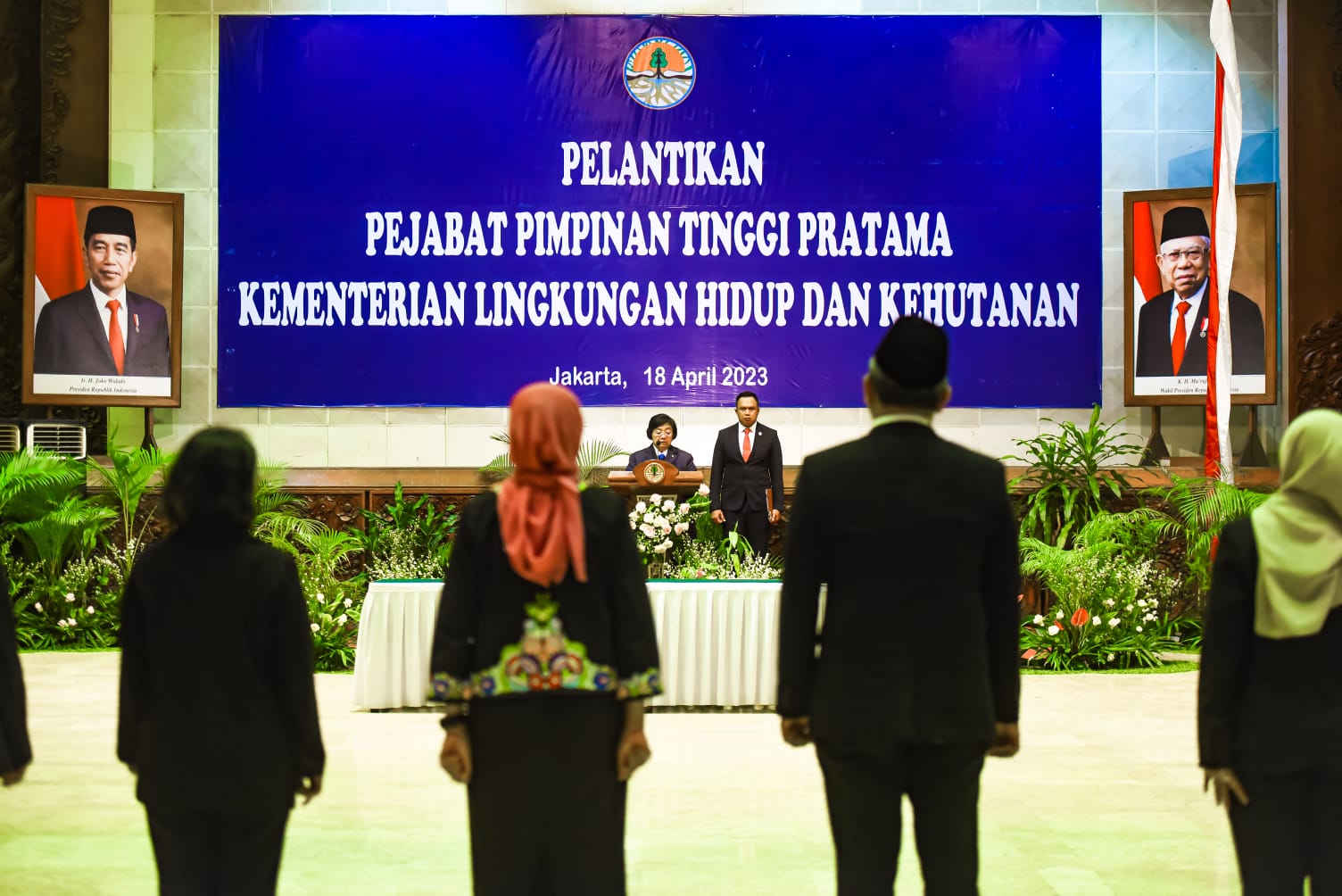 Menteri Lingkungan Hidup dan Kehutanan (LHK) Siti Nurbaya melantik 10 Pejabat Pimpinan Tinggi Pratama KLHK di Jakarta, Selasa (18/4). Dari ke 10 pejabat ini, dua orang diantaranya merupakan promosi dari hasil seleksi terbuka (open bidding), dan delapan orang lainnya hasil uji kompetensi mutasi JPT Pratama.