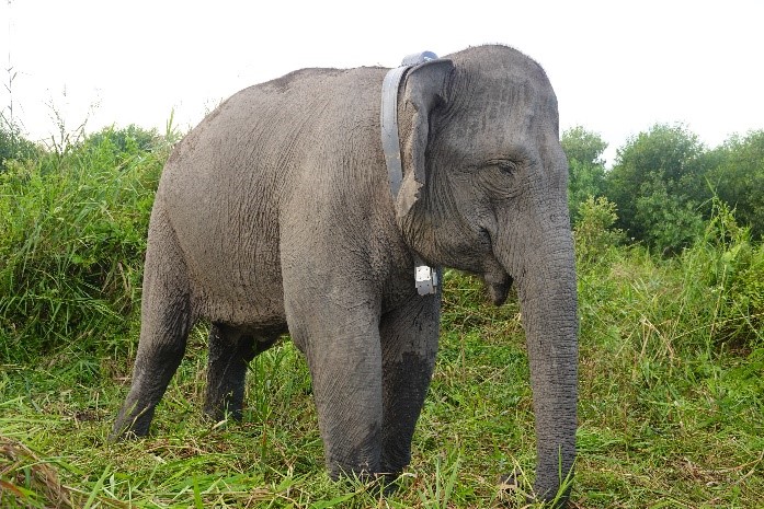 Pemasangan dilakukan pada gajah berjenis kelamin betina yang berada pada kelompok gajah yang berjumlah 13 ekor. Gajah betina tersebut berusia sekitar 25 tahun dan memiliki berat 2.782 kg.